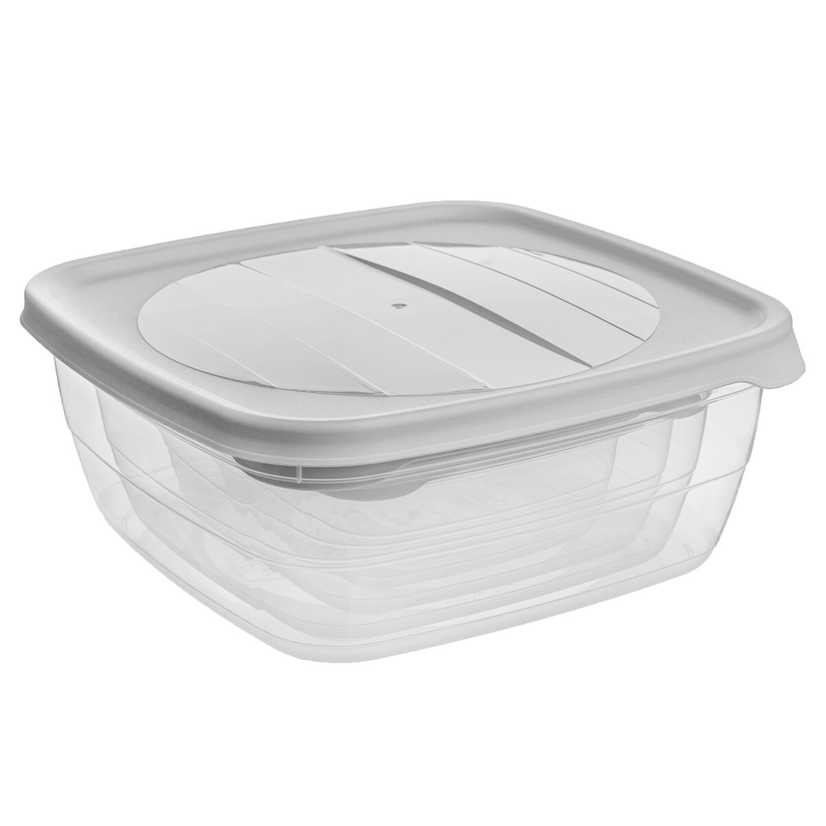 Kód produktu 127103Sada čtyř čtvercových plastových dóz TREND s barevnými víčky. Jejich objemy jsou 0,5 l, 0,9 l, 1,5 l a 2,5 l.