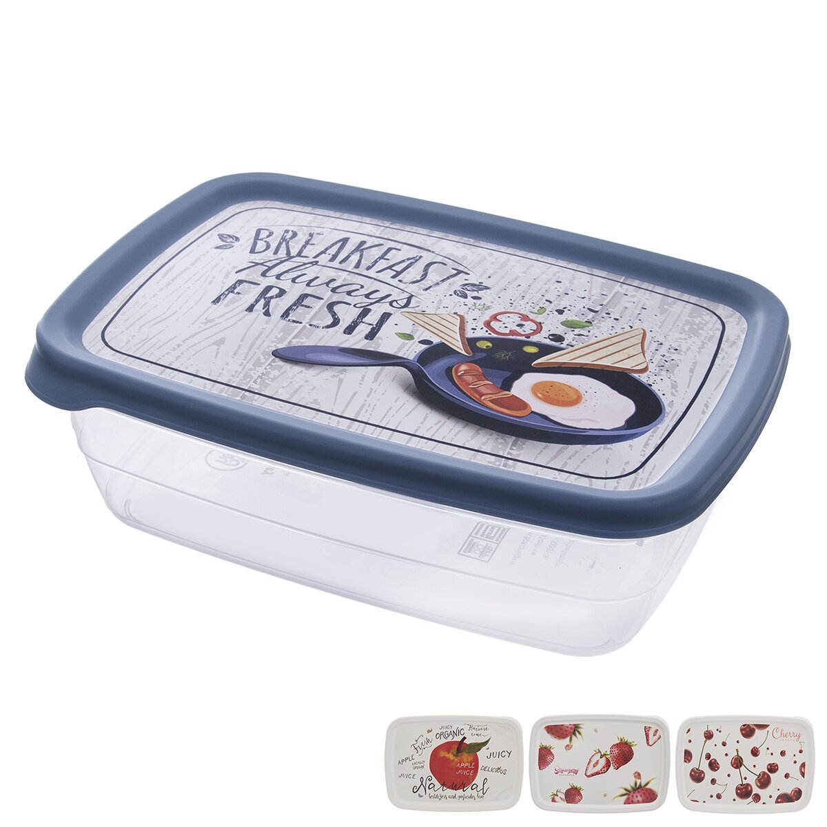 Kód produktu 127130Plastová obdélníková dóza TREND o objemu 1,2 l s víčkem v barevném dekoru.