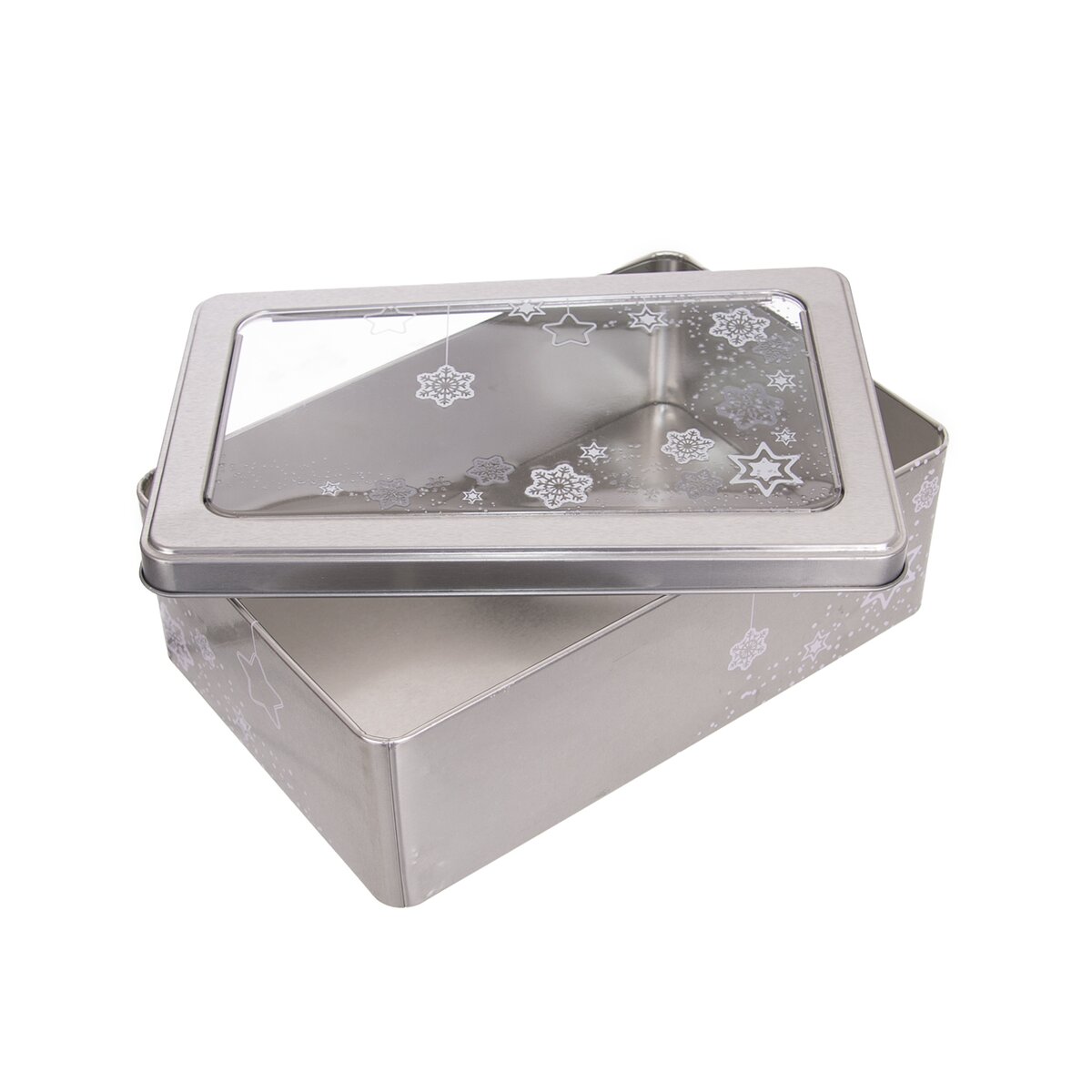 Dóza s víčkem. Skvělá jako dárek naplněný vaším vlastním cukrovím. Průhledné okénko ve víčku. Materiál: kov, plast. Rozměry: 20x13x6,5 cm.