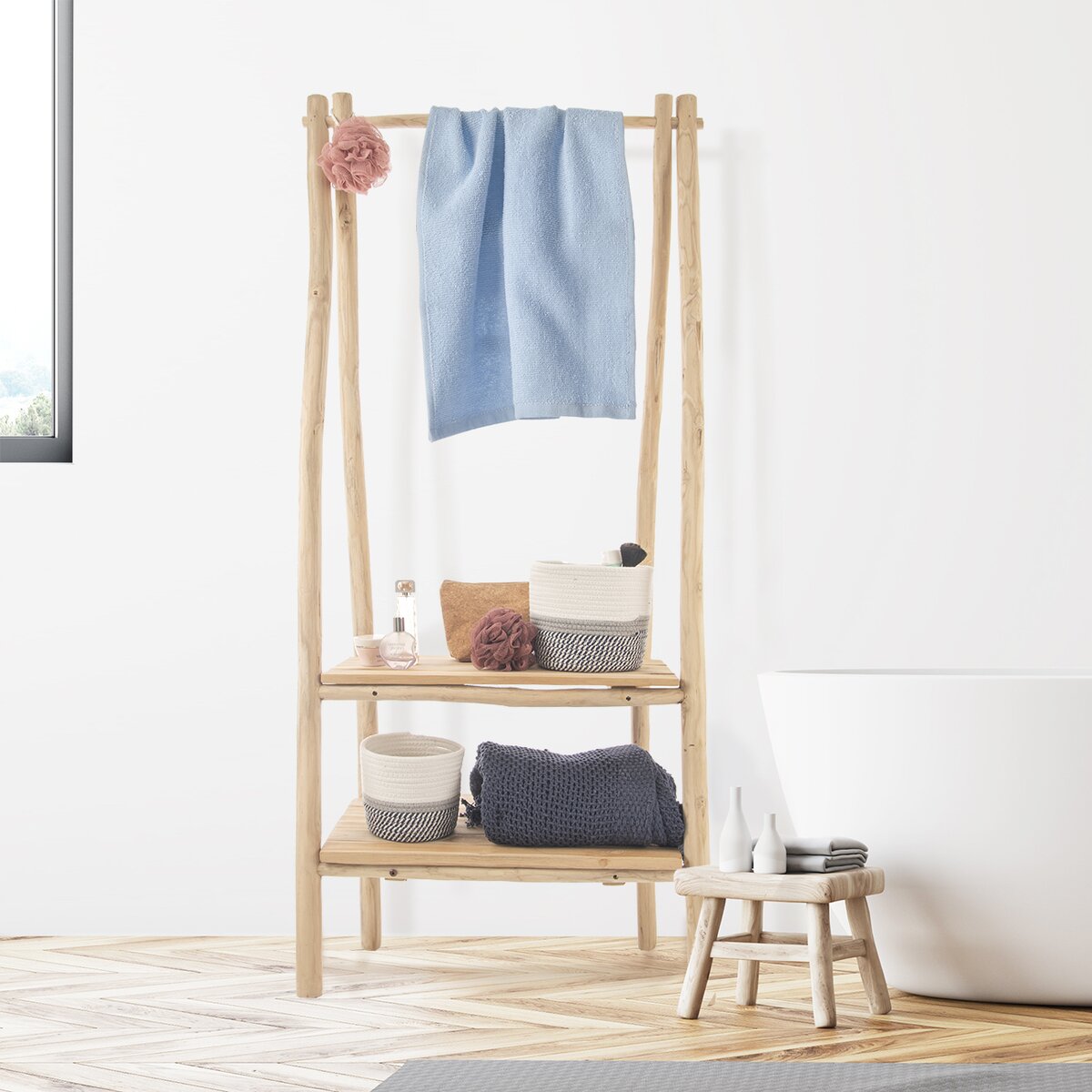 Kód produktu 001310Dřevěný stojan se 2 policemi skvěle využijete jako dekoraci, místo němého sluhy, jako část nábytku. Doma, na terase, balkóně i v koupelně.