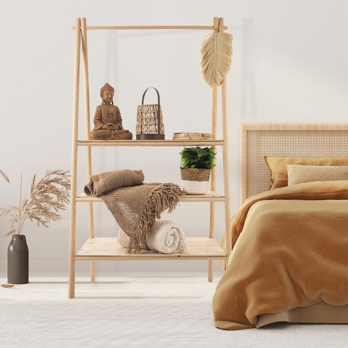 Kód produktu 001311Dřevěný stojan se 3 policemi skvěle využijete jako dekoraci, místo němého sluhy, jako část nábytku. Doma, na terase, balkóně i v koupelně.