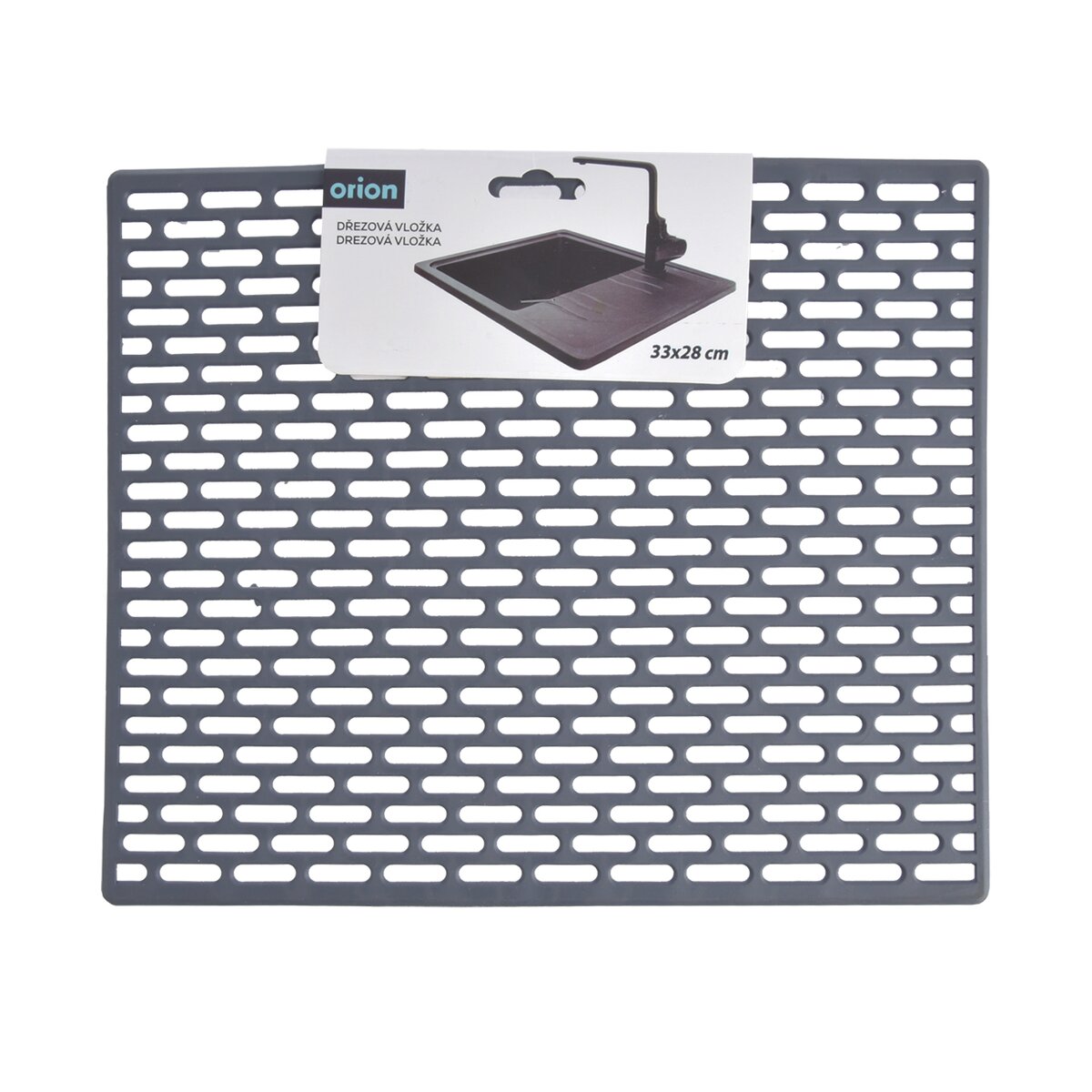 Kód produktu 150918Pružná plastová vložka o rozměru 33x28x0,2 cm má šedou barvu a zamezí poškození dřezu i pokládaného nádobí, určeného k mytí.