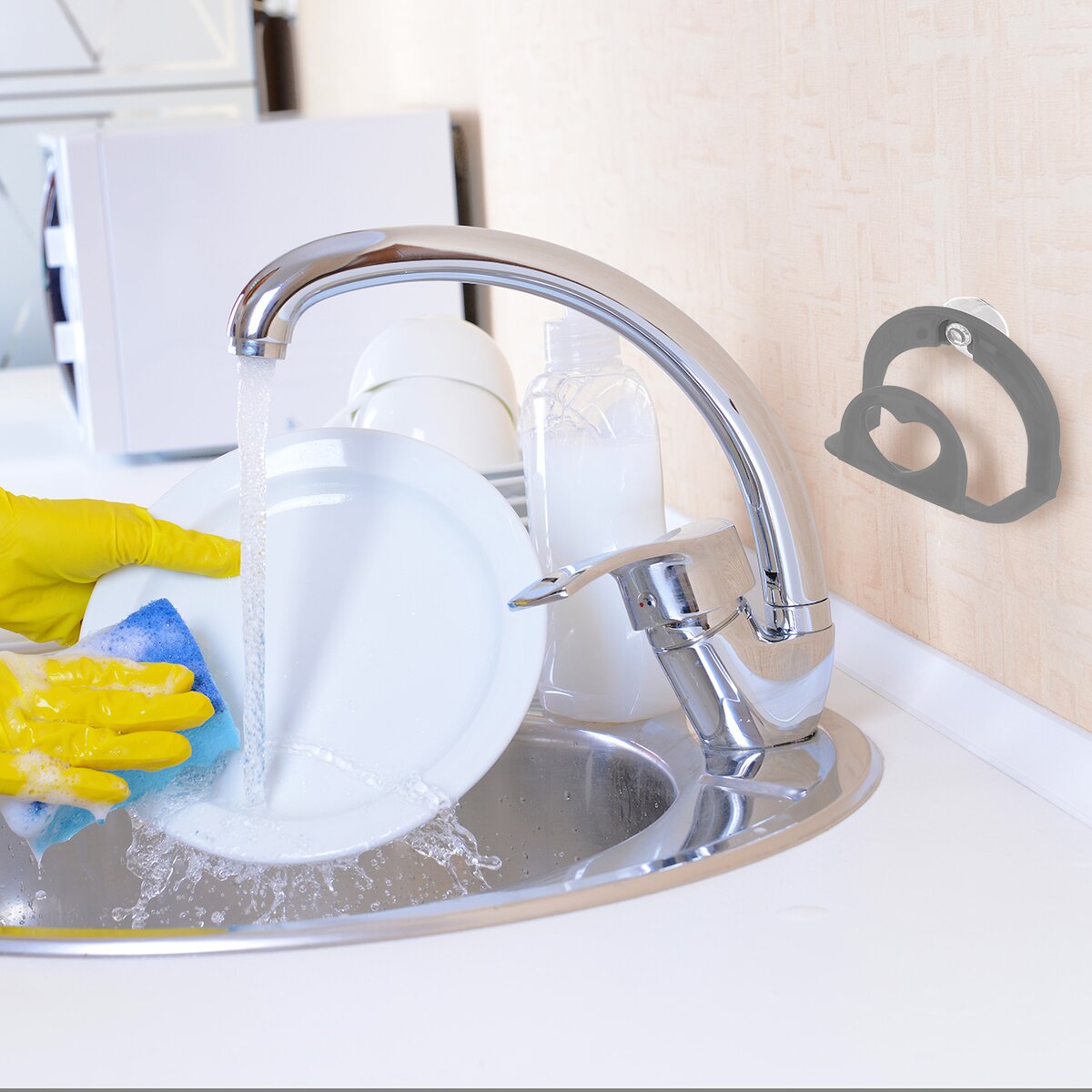 Plastový držák s přísavkou lze připevnit na hladkou, odmaštěnou stěnu, kachličky nebo na stěnu dřezu. Je vyroben z PP a PVC. Ať už jej připevníte u dřezu v kuchyni, koupelně nebo u výpusti vody na zahradě, kde je třeba omývat zeleninu od hlíny, čistit misky pro zvířata apod.