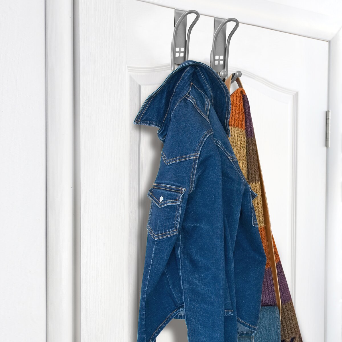 Kód produktu 834723Sada dvou kusů nerezových závěsných věšáků na dveře se dvěma háčky.