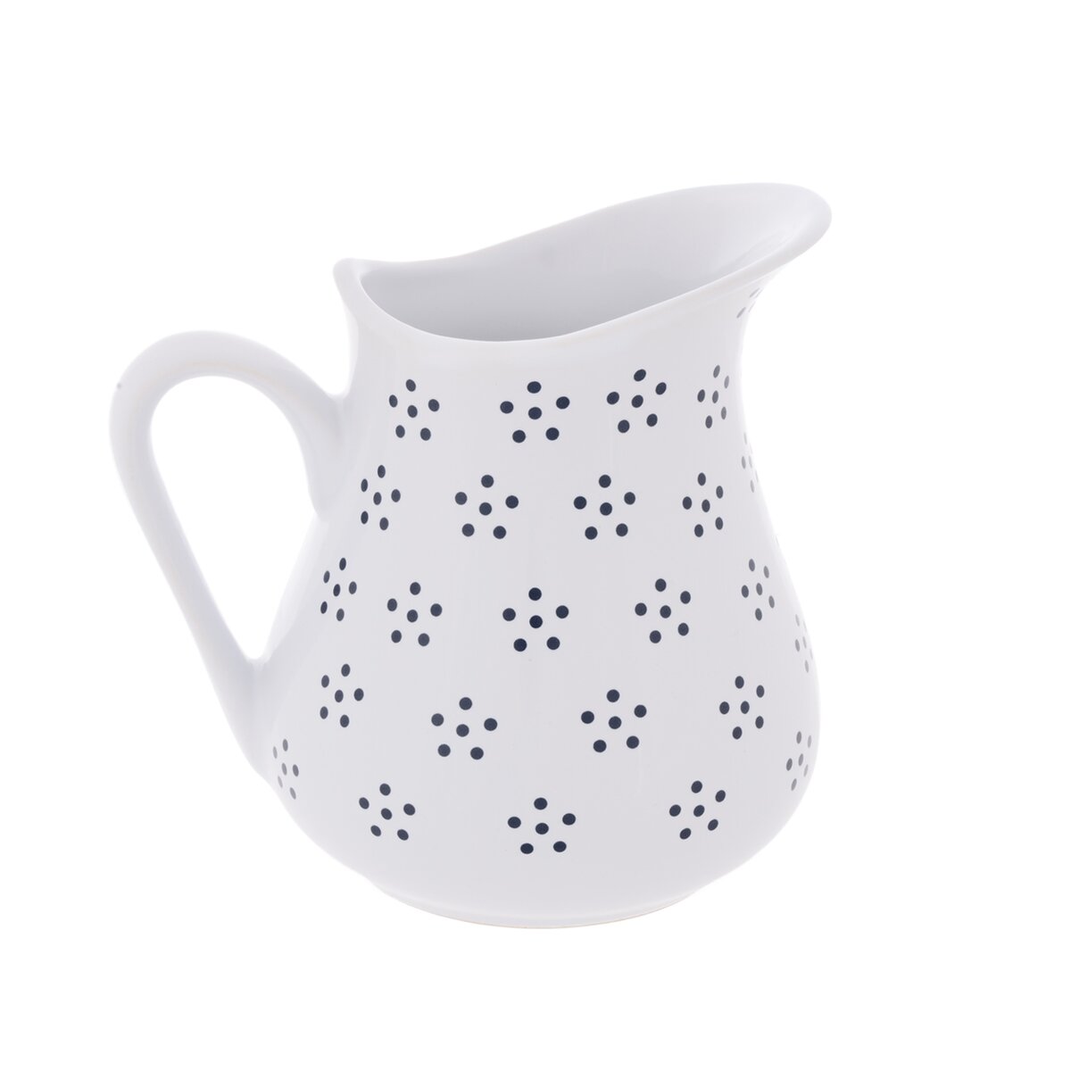 Kód produktu 126687Stylový keramický bílý džbánek s modrými kvítky na mléko, limonádu nebo jako originální váza.