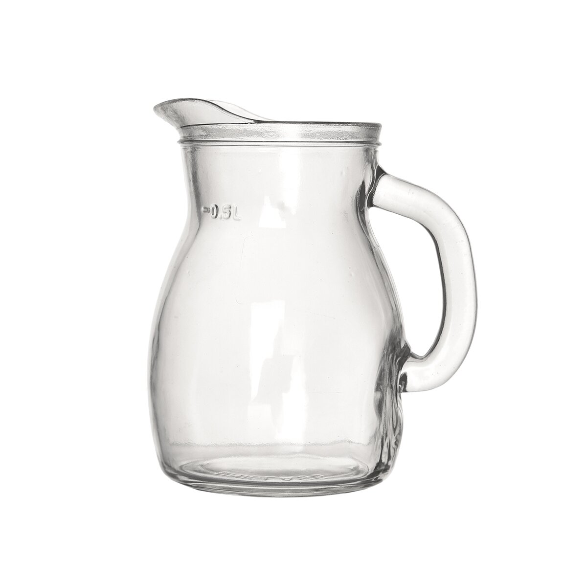 Kód produktu 126655Skleněný džbán s měrkou 0,5 l, výlevkou a praktickým uchem. Je vhodný pro podávání nápojů, především domácích šťáv, vody nebo vína.