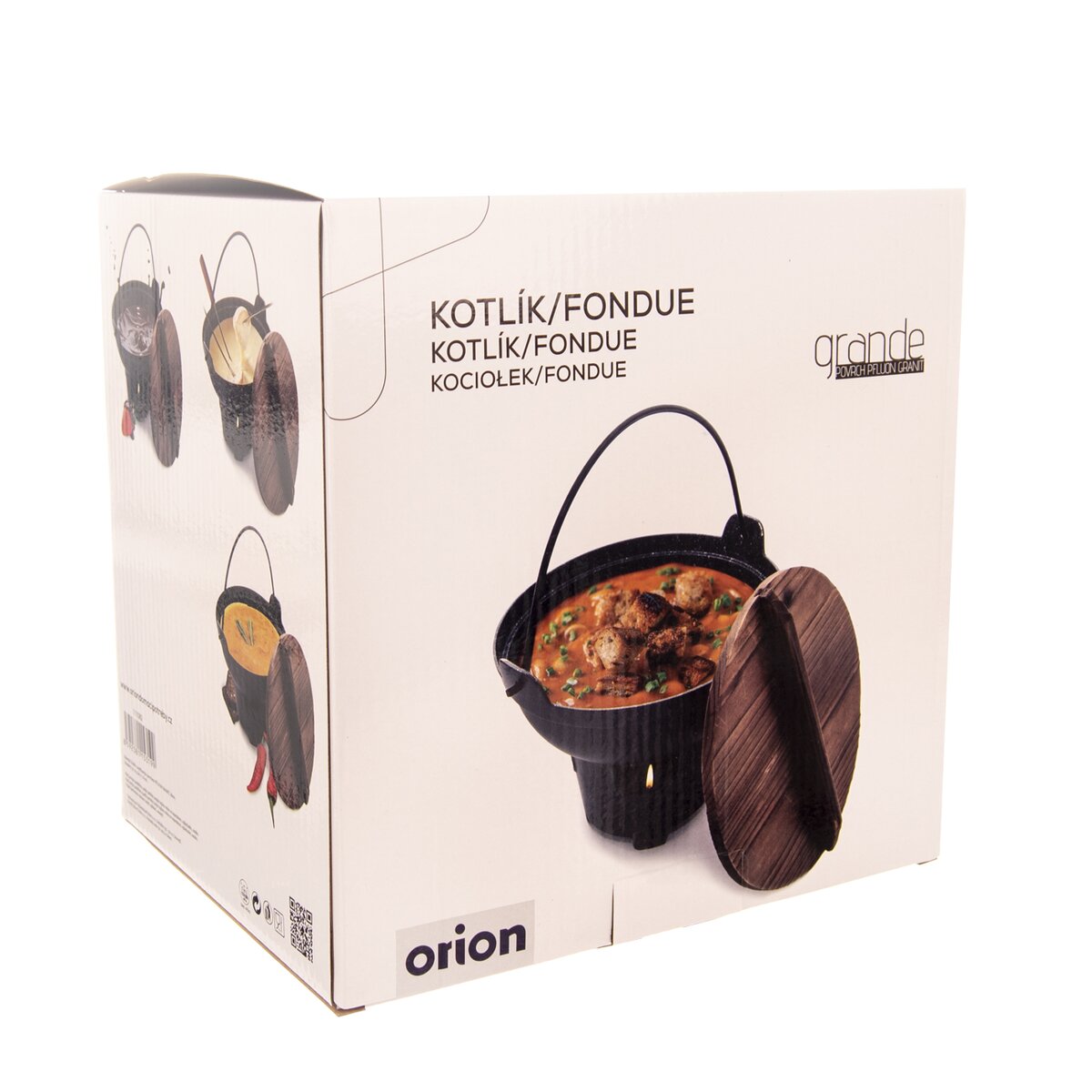 Můžete naservírovat čokoládové, sýrové i masové fondue nebo nádobu využít jako kotlík a servírovat guláš, masovou směs nebo husté polévky. V prostoru pod nádobou můžete udržovat pokrm teplý pomocí svíčky nebo fondue hořáku, ten není součástí. Má sklopné ucho pro pohodlné přenášení a dřevěnou pokličku.