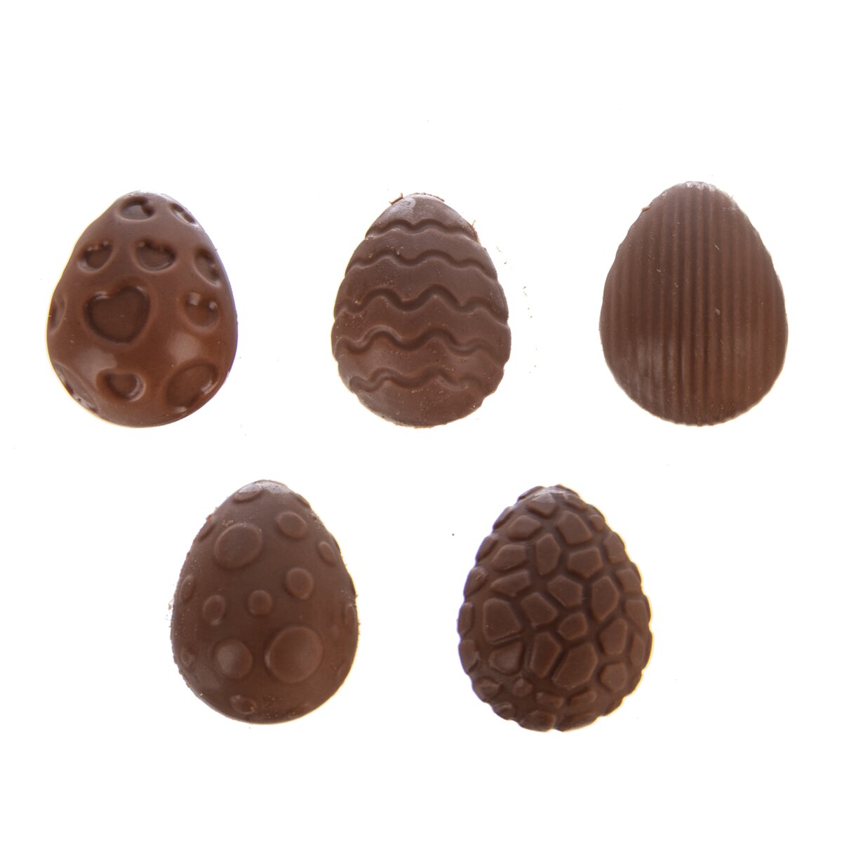 Stačí rozpuštěnou čokoládu nalít, přidat oblíbené ingredience, ořechy, sušené ovoce, sušenou levanduli apod. a nechat ztuhnout v ledničce. Jednotlivá vajíčka z pružné formy jednoduše vyloupnete. Lze také spojit dvě poloviny a budete mít rázem vajíčko celé, s hezkým plastickým reliéfem. Hotové vajíčko má velikost 3,3x2,5 cm a může sloužit nejen k ozdobení jarních cupcaků, ale i jako drobná výslužka pro koledníky.