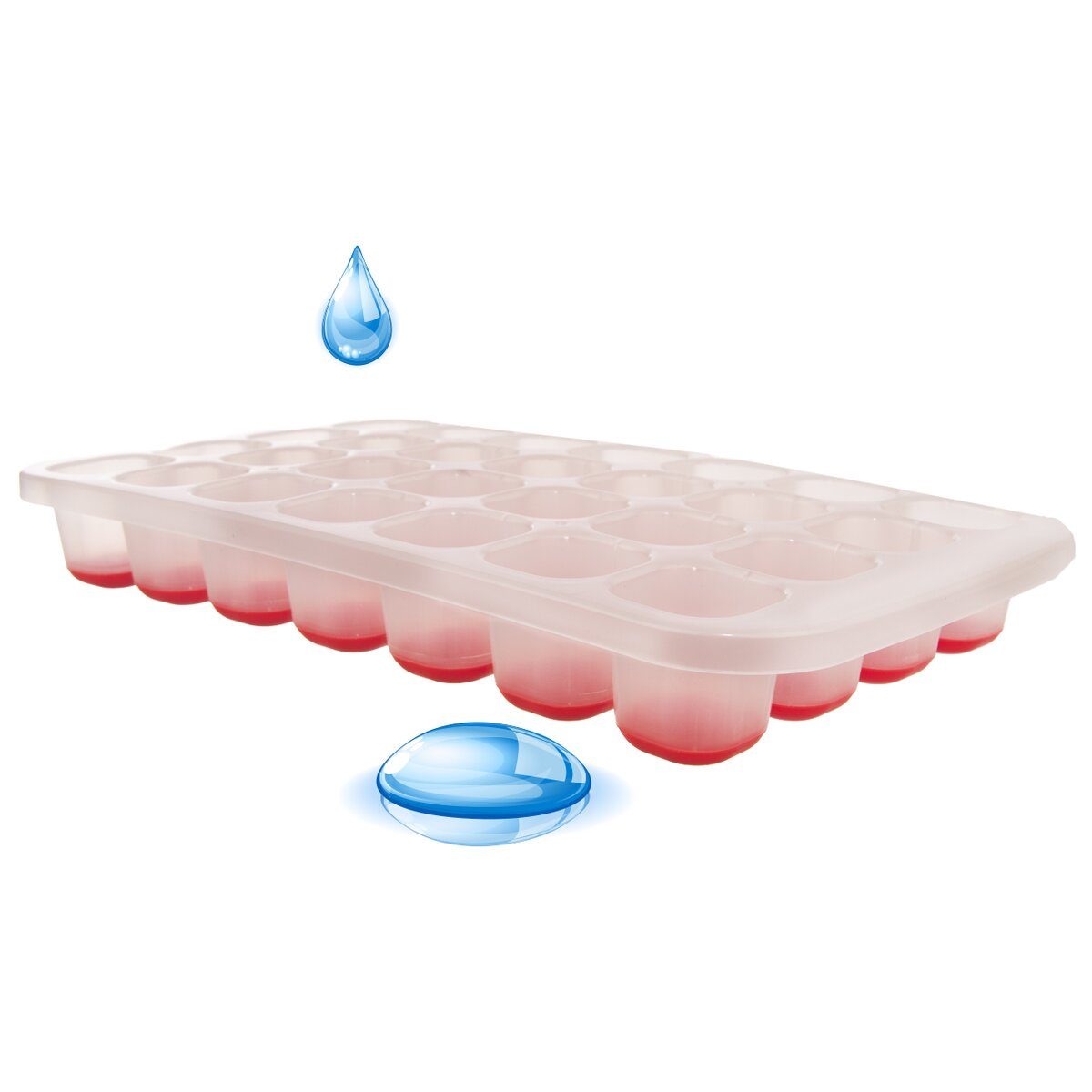 Forma na led Vám vytvoří ledové kostky na ochlazení nápojů. Díky měkkému plastu na dně formiček půjde led dobře vyndat z formy. Materiál: plast. Rozměry: 27,5x15x3,5 cm.