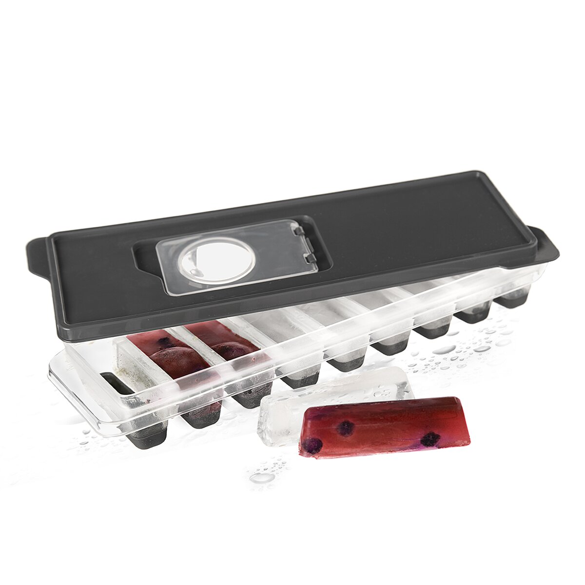 Kód produktu 151126Plastová forma s dolní silikonovou částí a praktickým víčkem pro výrobu ledových tyčinek délky 7 cm v mrazáku.