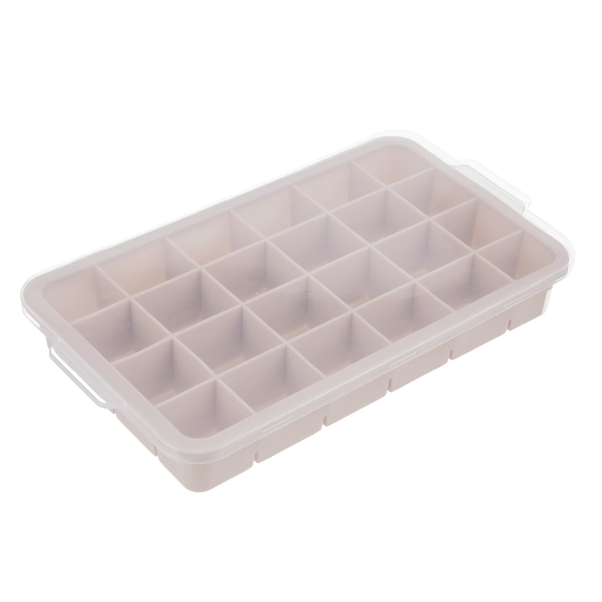 Kód produktu 151136Světlá forma v kávovém odstínu na přípravu 24 ledových kostek je kryta průhledným víčkem, Kostky se hodí do sklenic i lahví na pití, případně ji lze použít k mražení pesta, domácího bujónu nebo bylinkového másla.