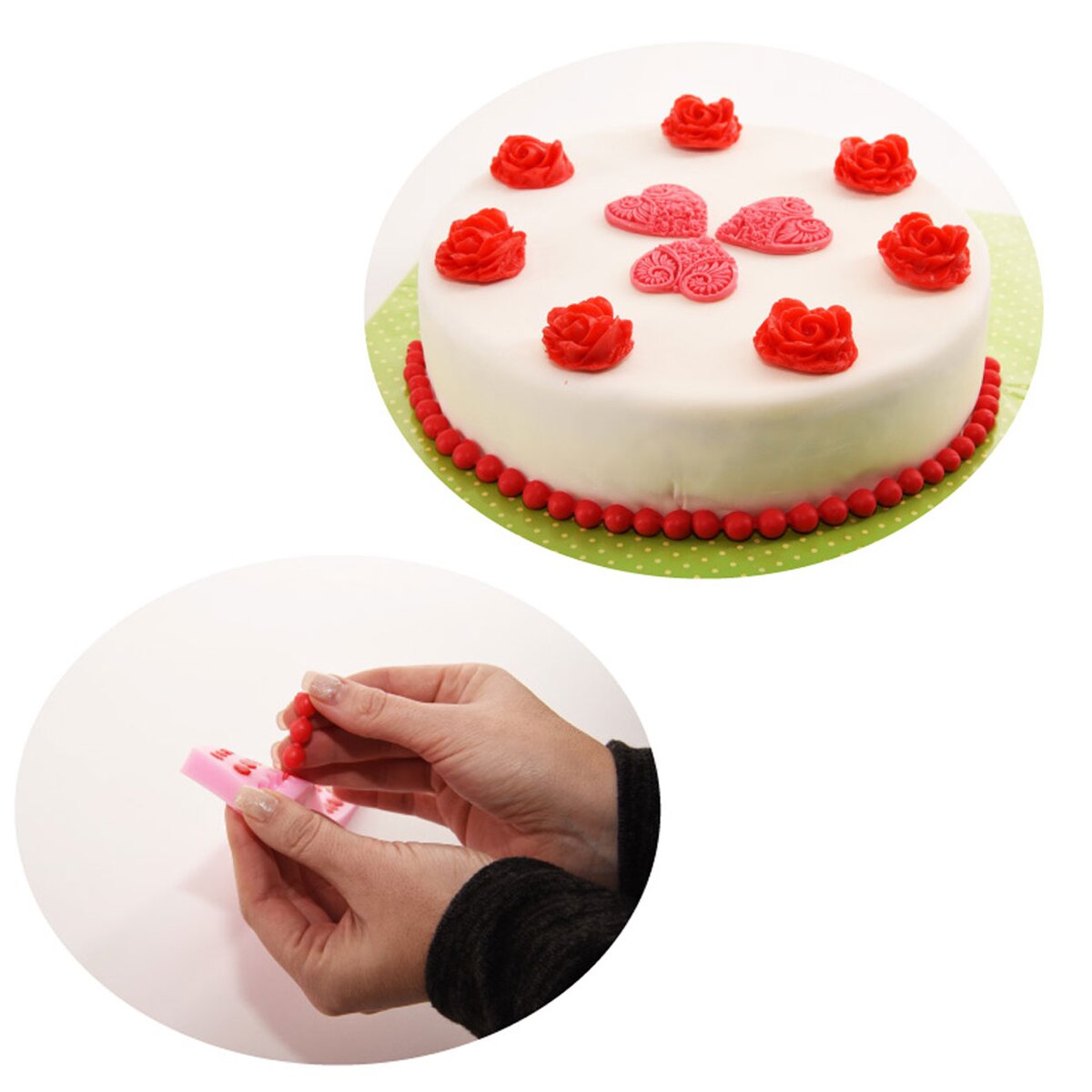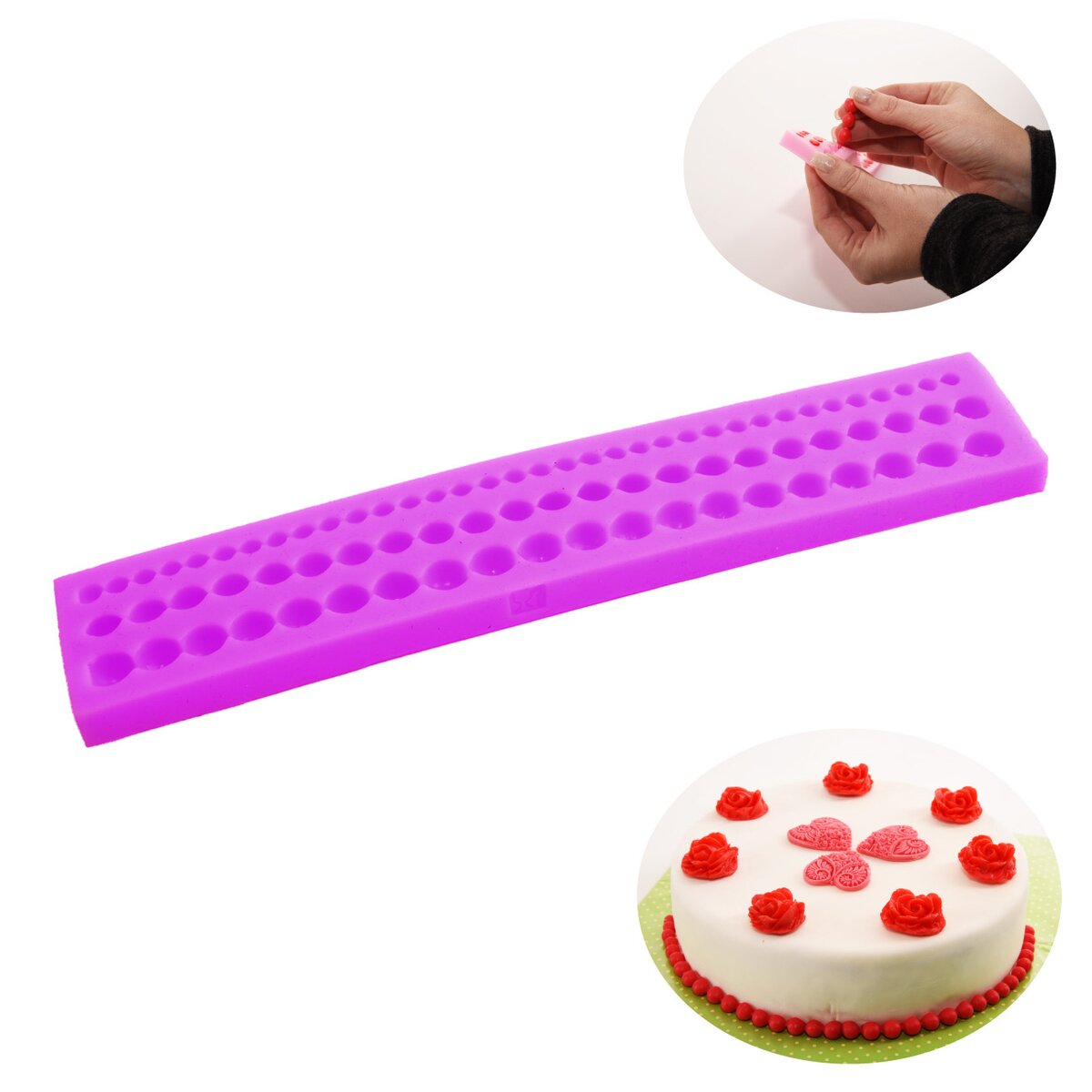 Forma je vynikající pro snadnou přípravu ozdob ve tvaru perliček tří velikostí z marcipánu nebo cukrářských hmot. Naplněné formičky vložte na 5-10 minut do mrazničky a poté jemným zatlačením na dno vyklopte. Materiál: silikon. Vhodné do myčky na nádobí. Rozměry: pr. perliček 1cm/0,9cm/0,6cm. Forma 23x4x1,5 cm.