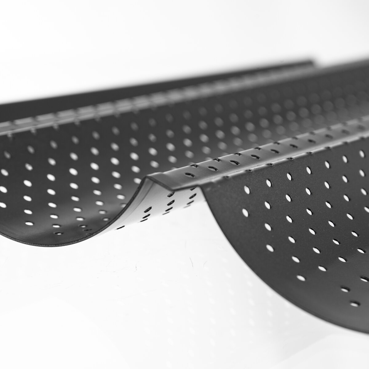 Kód produktu 120038Perforovaná forma na bagety, bagetový chléb, veky a rohlíky s nepřilnavým povrchem udrží při pečení jejich tvar a pečivo se lépe stejnoměrně propeče.