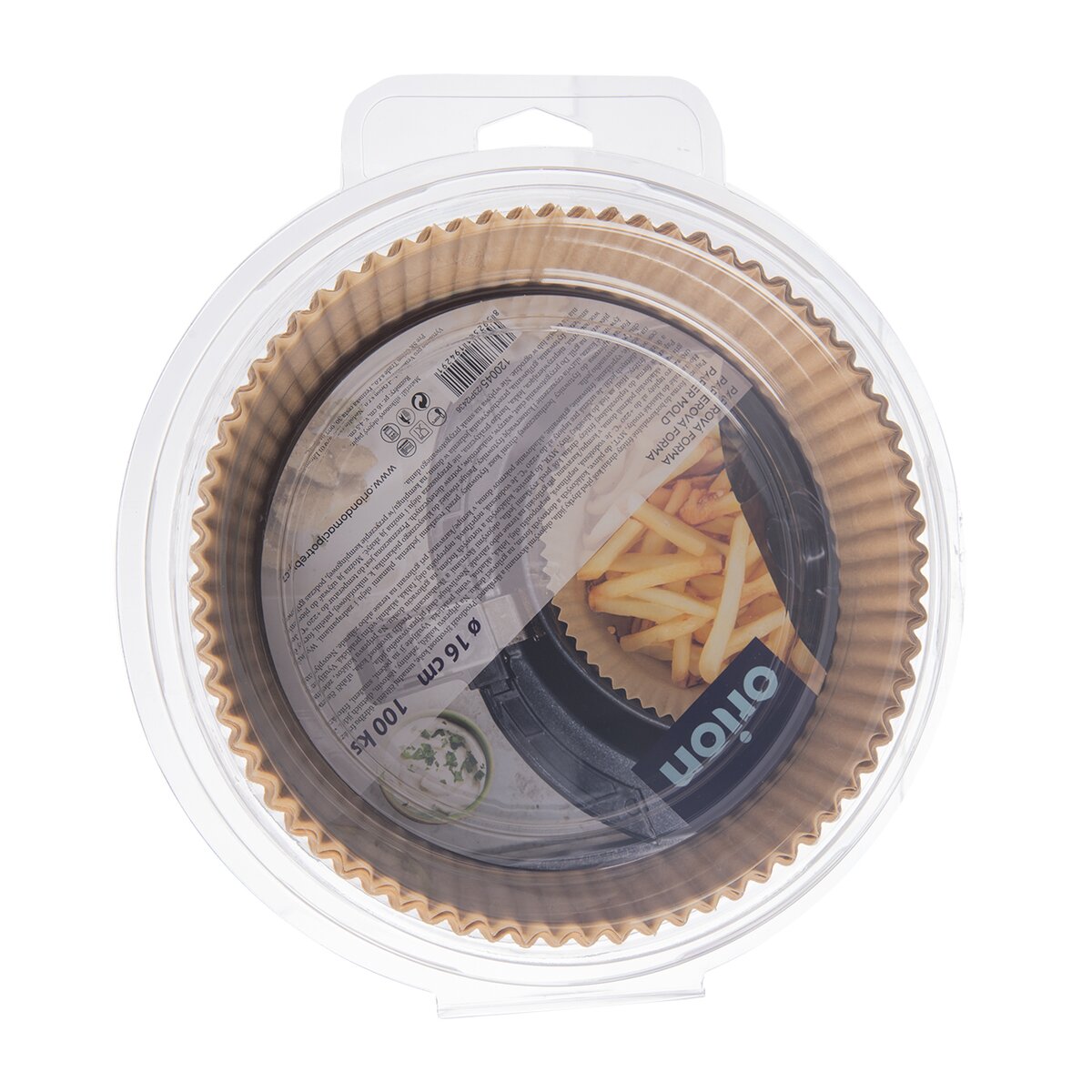 Kód produktu 120045Sada 100 kusů kulatých forem ze silikonového olejového papíru, které lze využít při přípravě pokrmů v horkovzdušné fritéze, ale i v klasické nebo mikrovlnné troubě.