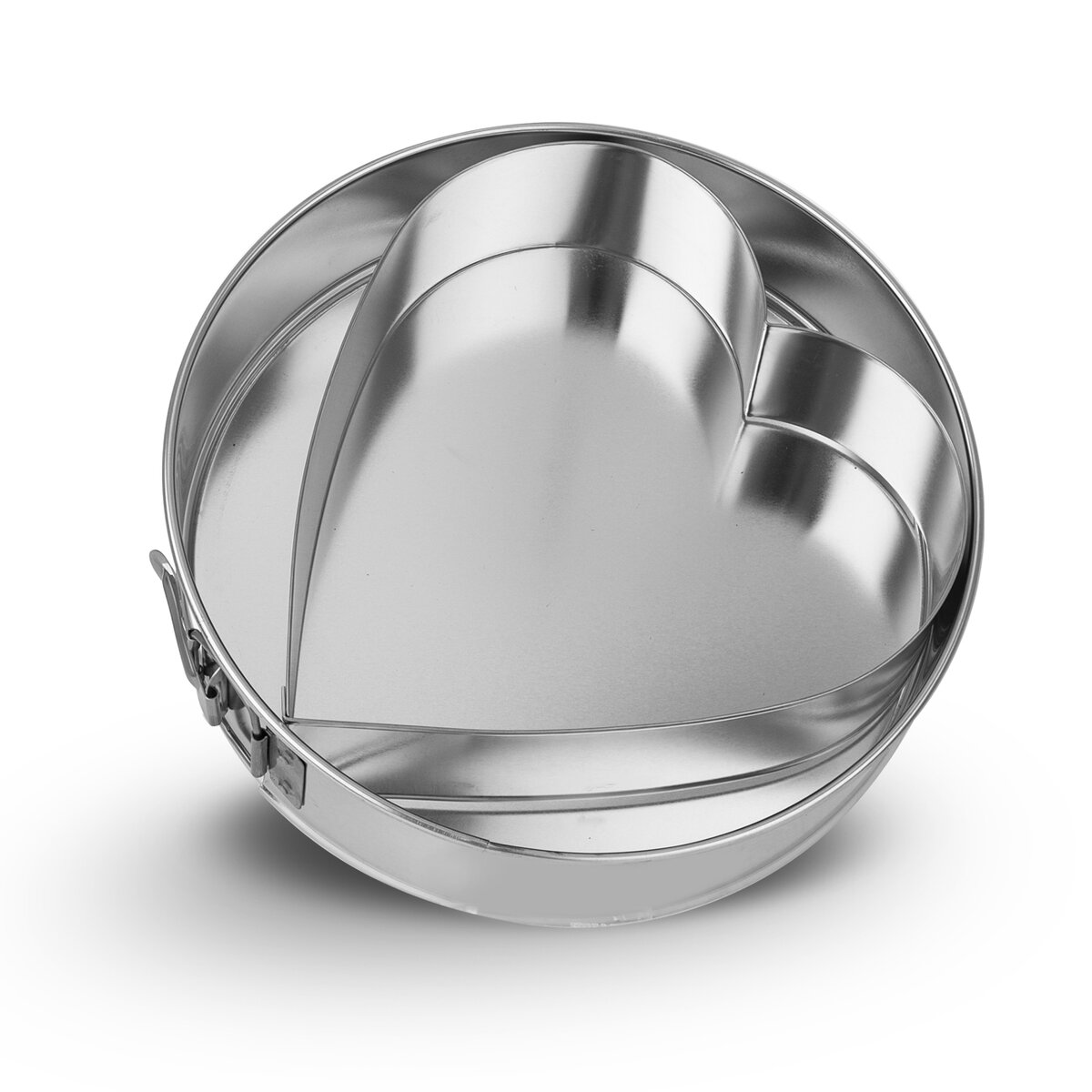 Kód produktu 122288Kulatá pocínovaná forma o průměru 24 cm, se odnímatelným dnem na pečení dortu, navíc s vloženou srdcovou formou. Je opatřena přezkou pro snadnější vyjímání upečených dobrot.