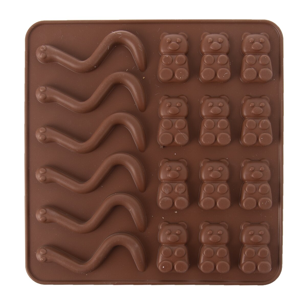 Kód produktu 151738Nepřilnavá hnědá silikonová forma pomůže s domácí výrobou želatinových bonbónů, oblíbených gumových medvídků a žížalek nebo čokoládových pralinek.