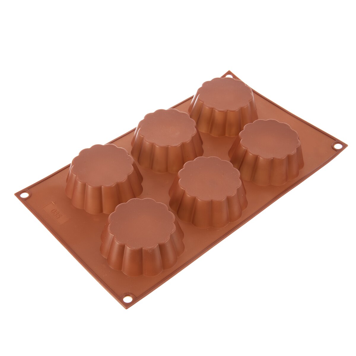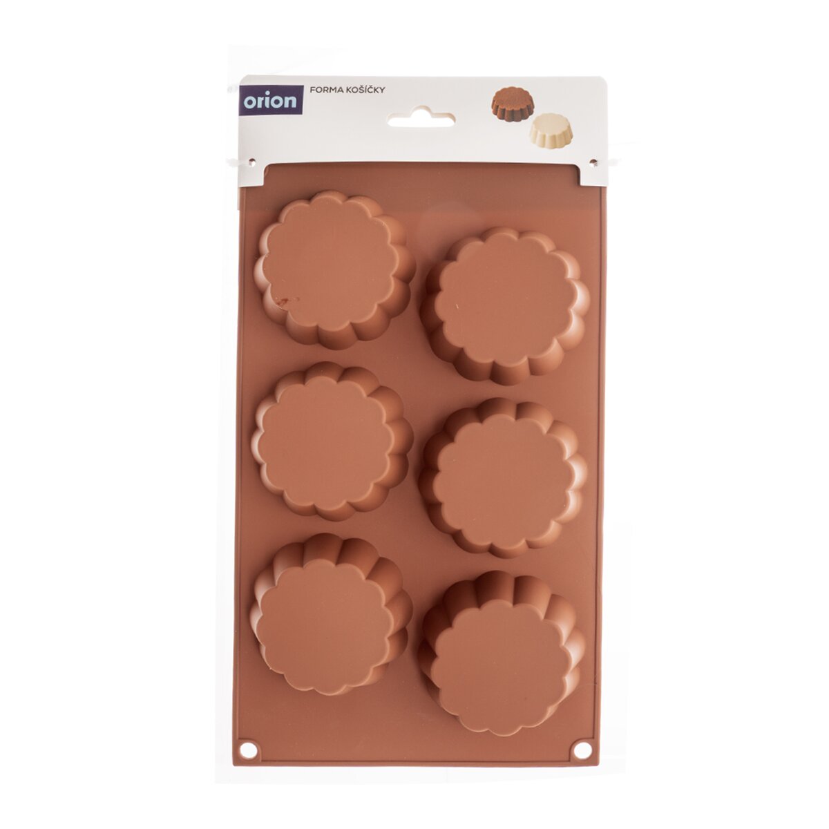 Kód produktu 154451Nepřilnavá hnědá silikonová forma je určena pro rychlé a stejnoměrné pečení 6 ks košíčků či muffinů, ale i k přípravě smetanových dezertů nebo čokoládového fondantu. Jedna formička má průměr 7,5 cm.