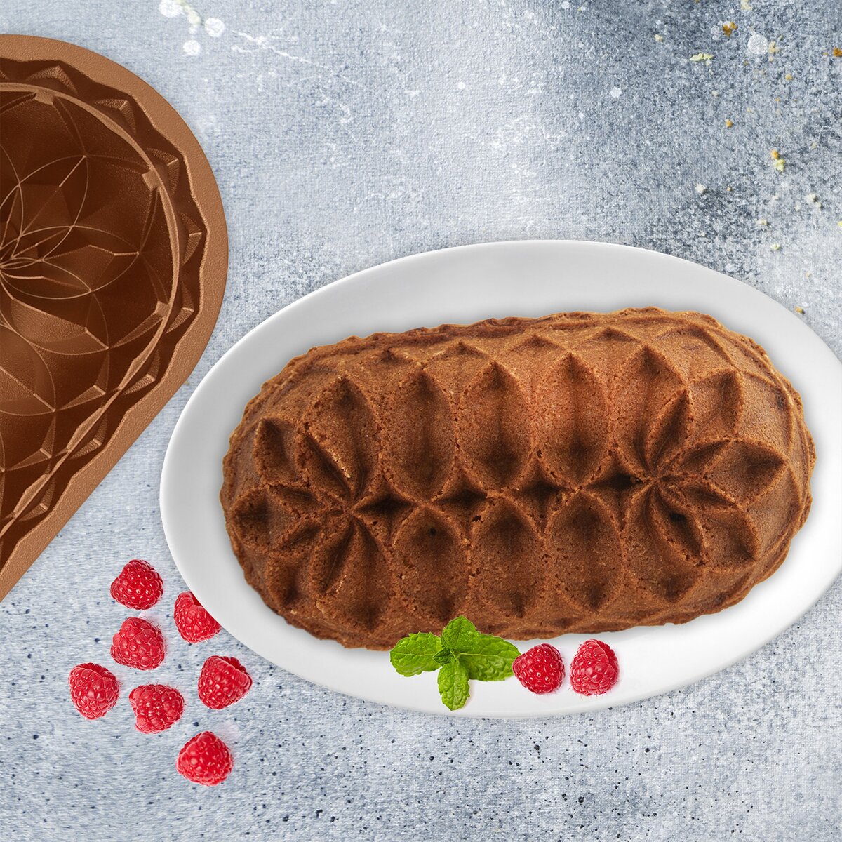 Kód produktu 120063Kovová pečicí forma MARISSA KVĚT měděné barvy s nepřilnavým povrchem, je vhodná na pečení nadýchaných moučníků, srnčího hřbetu, nákypů i nádivek.