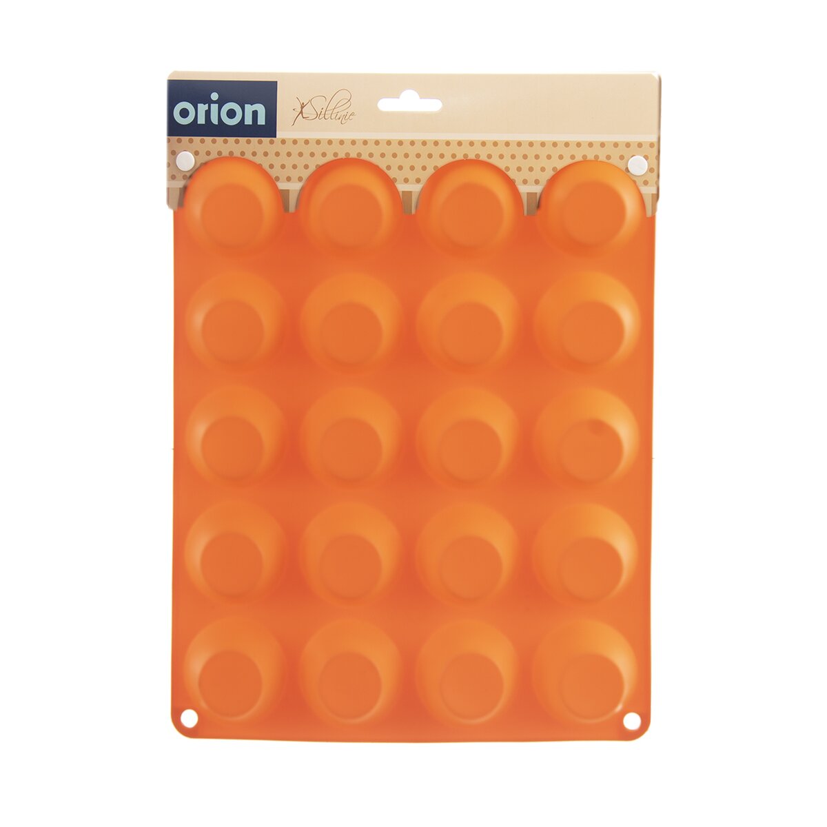 Kód produktu 151764Nepřilnavá silikonová forma v oranžové barvě pro rychlé a stejnoměrné pečení 20 ks malých muffinů.