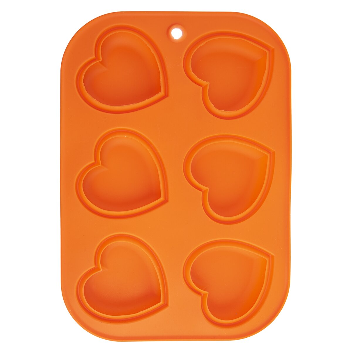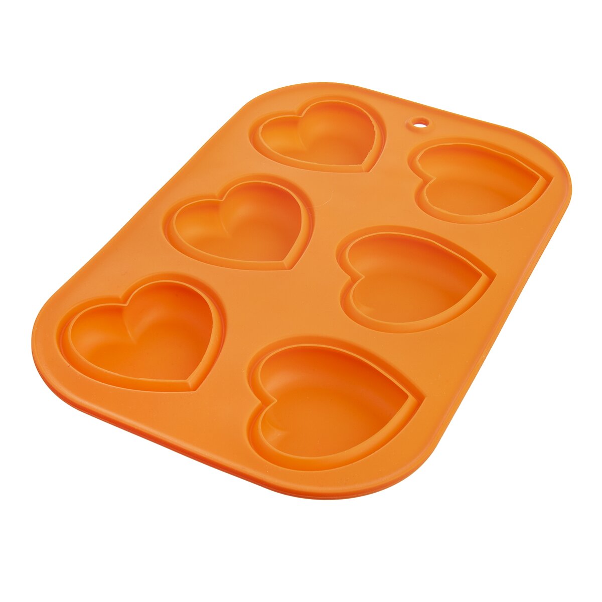 Díky kvalitní a praktické oranžové silikonové formě ve tvaru srdíček bude pečení muffinů snadnější. Třeba 6 ks naráz. Formy jsou vyrobené z odolného, žáruvzdorného silikonu, určeného pro styk s potravinami.