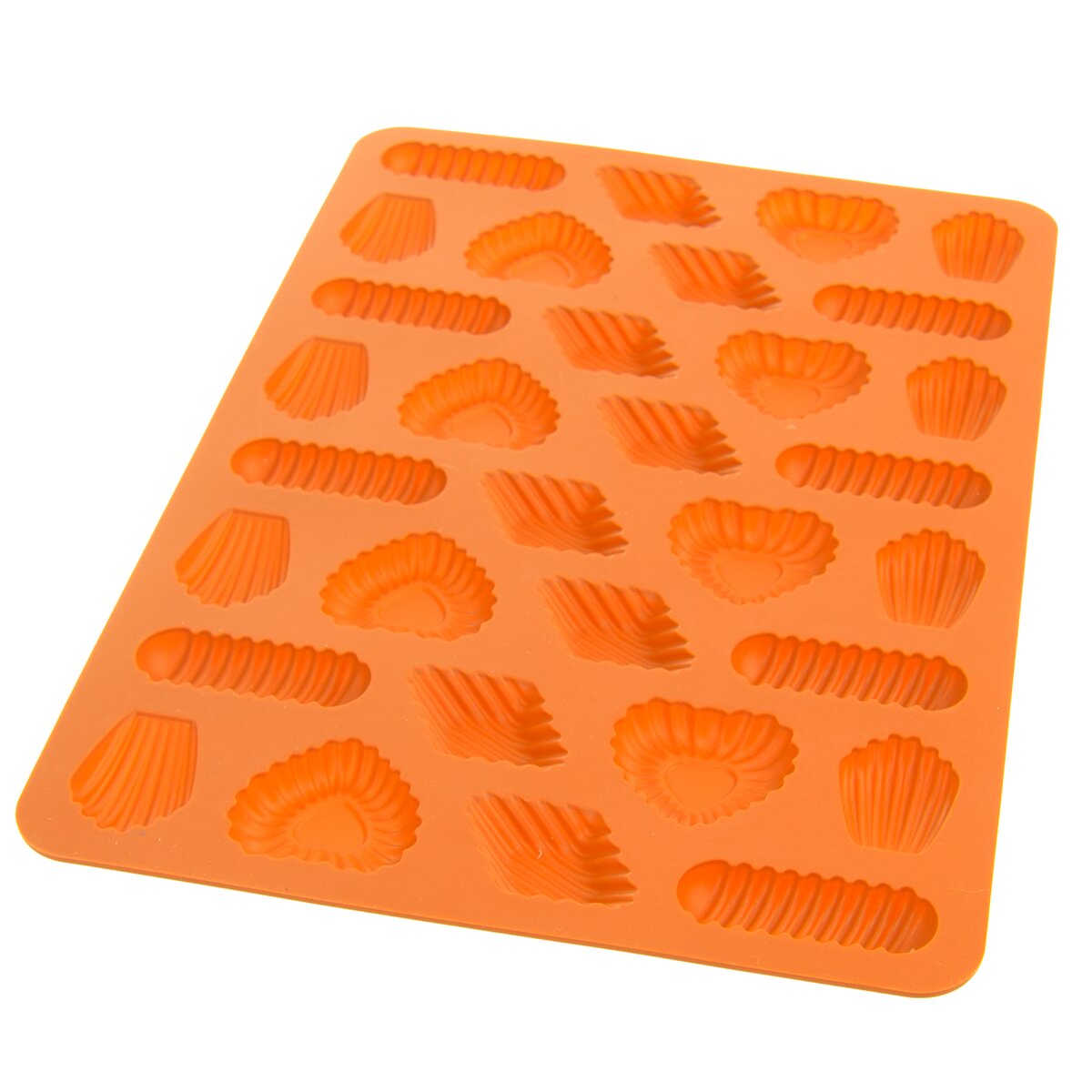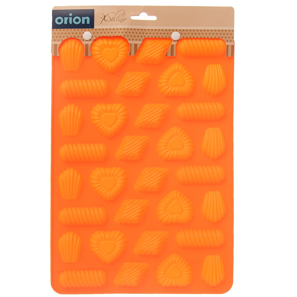 Kód produktu 151727Nepřilnavá oranžová silikonová forma umožní naráz upéct 32 ks praciček čtyř různých tvarů, ale poradí si i s čokoládovými pralinkami, petitkami ke kávě, marcipánovými ozdobami...