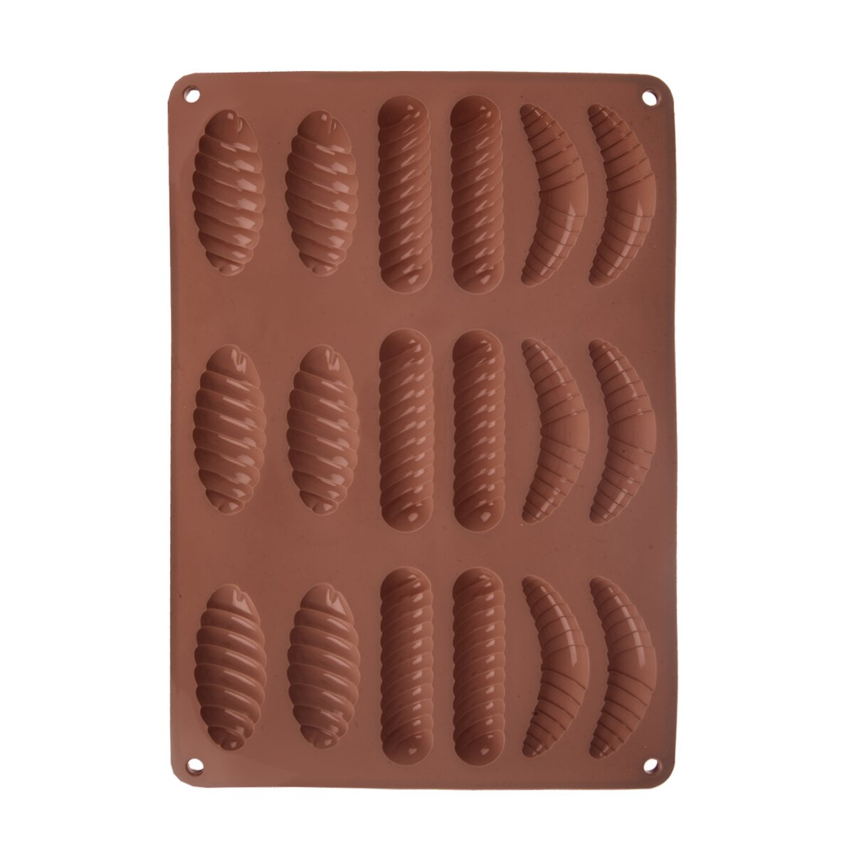 Kód produktu 154434Nepřilnavá hnědá silikonová forma umožní naráz upéct 18 ks praciček tří různých tvarů. Poradí si i s čokoládovými pralinkami, petitkami ke kávě a marcipánovými ozdobami.