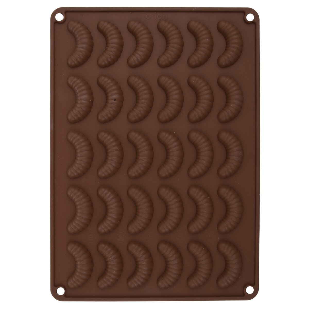 Díky kvalitní a praktické silikonové formě v hnědé barvě bude i vaše letošní pečení cukroví snadnější. Třeba 30 rohlíčků délky 5,5 cm naráz. Formy jsou vyrobené z odolného, žáruvzdorného silikonu, určeného pro styk s potravinami. Lze je použít i na čokoládové pralinky nebo želatinové bonbóny.