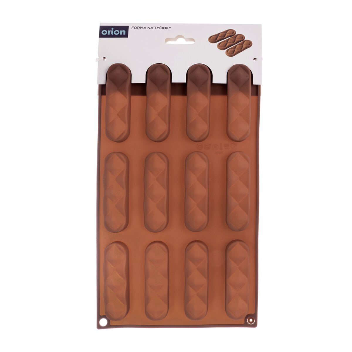 Kód produktu 154445Nepřilnavá hnědá silikonová forma pro rychlé a stejnoměrné pečení 12 ks tyčinek. Jedna formička má rozměr 8,2x2,1 cm.