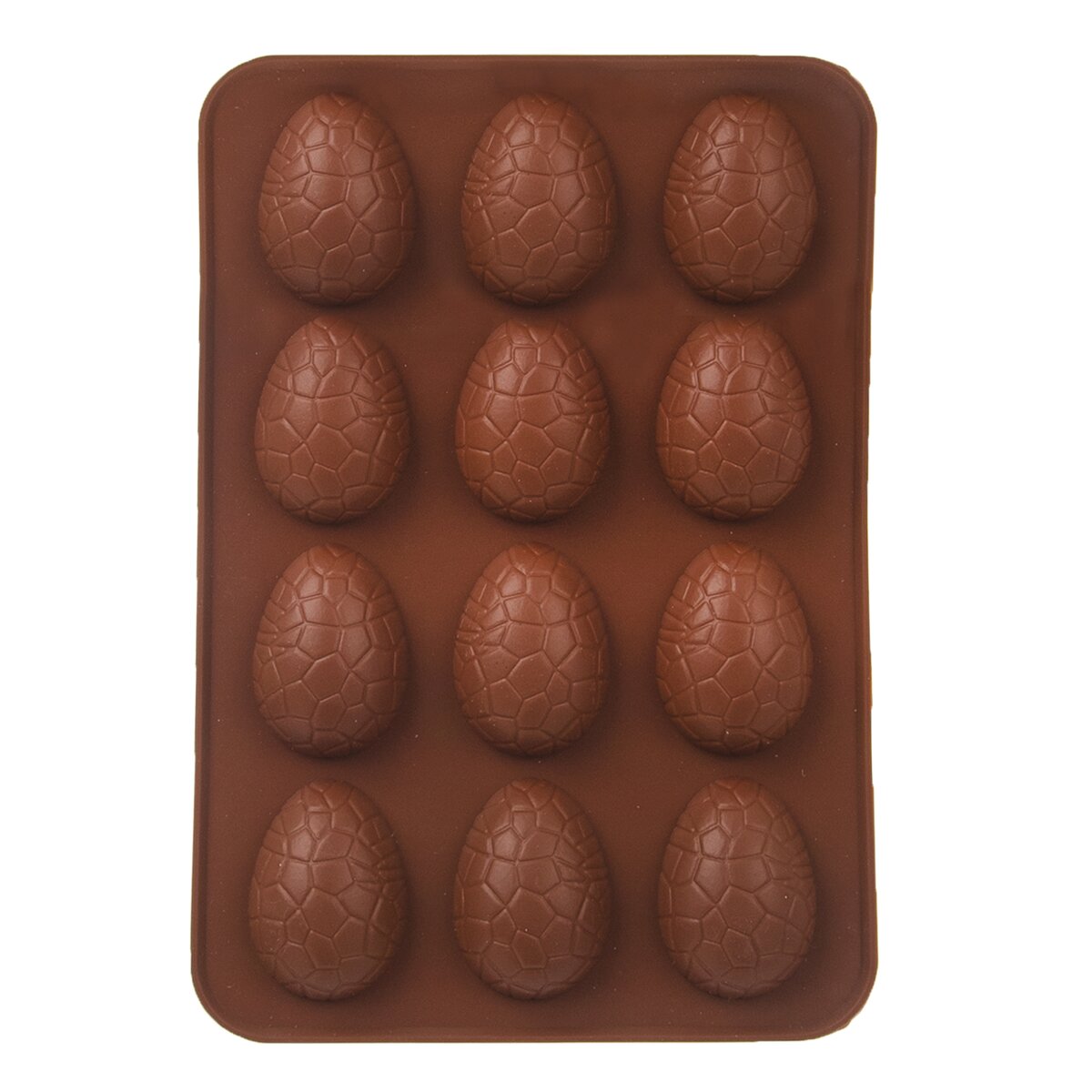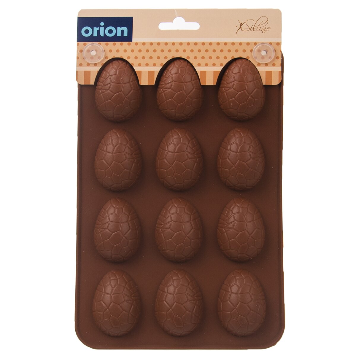 Kód produktu 151765Nepřilnavá velikonoční hnědá silikonová forma pro rychlé a stejnoměrné pečení 12 ks sušenek ve tvaru vajíčka nebo k výrobě originálních pralinek.