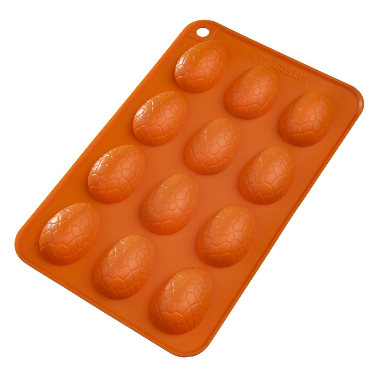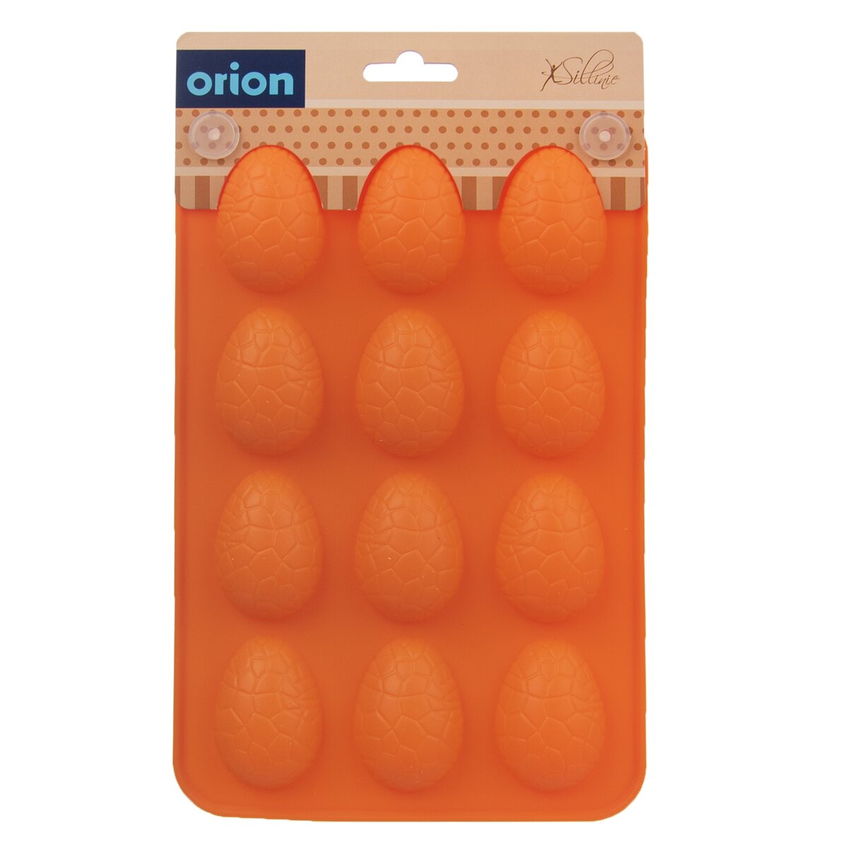 Kód produktu 151766Nepřilnavá velikonoční oranžová silikonová forma pro rychlé a stejnoměrné pečení 12 ks sušenek ve tvaru vajíčka nebo k výrobě originálních pralinek.