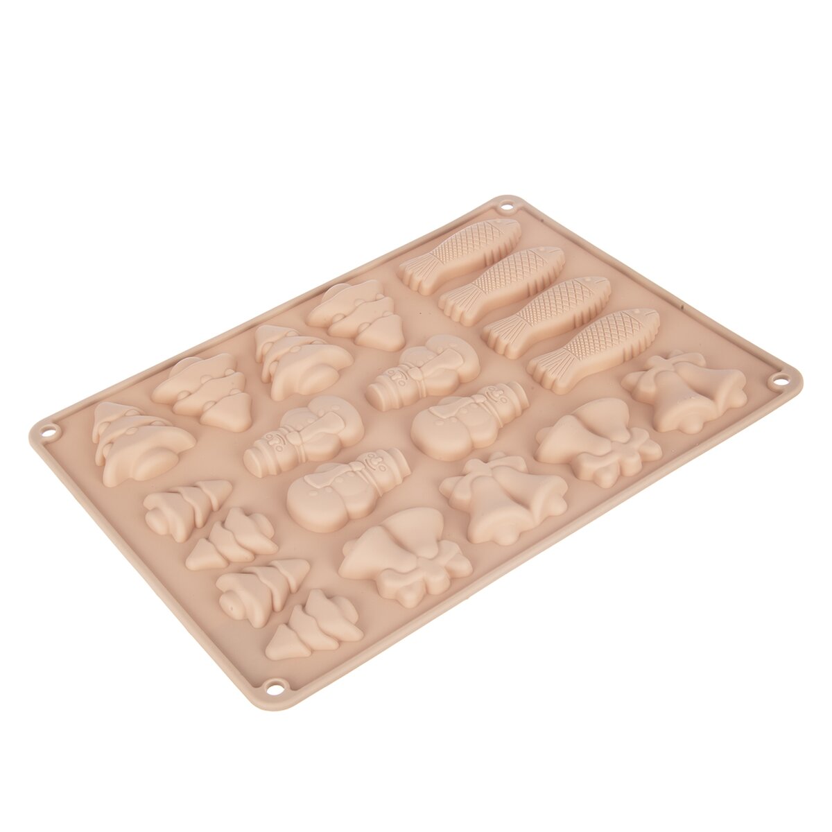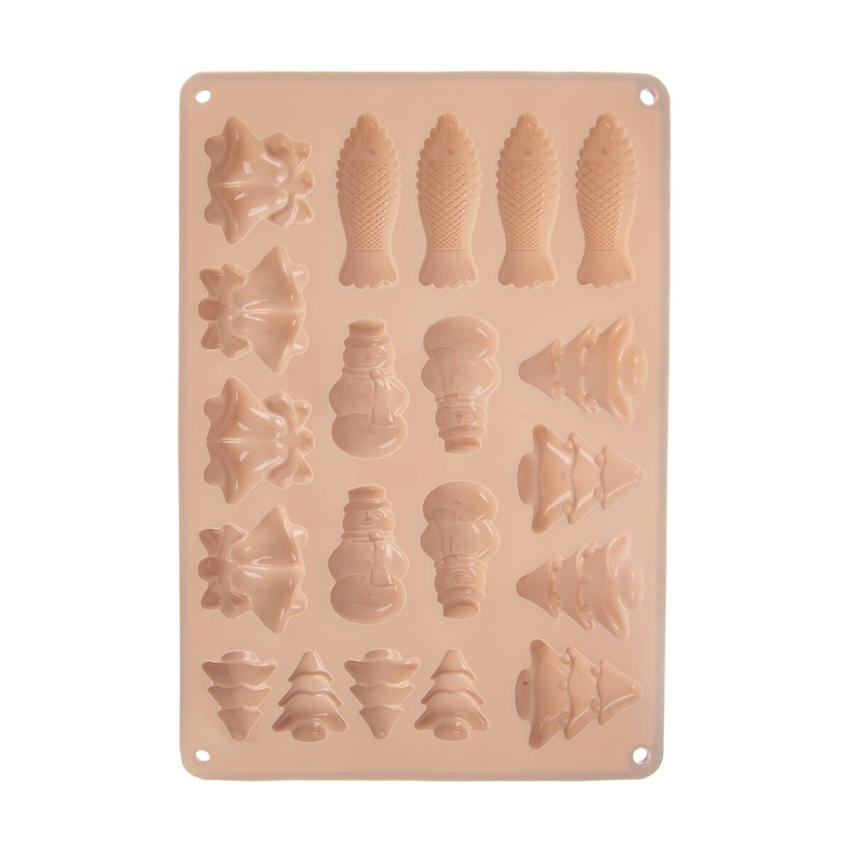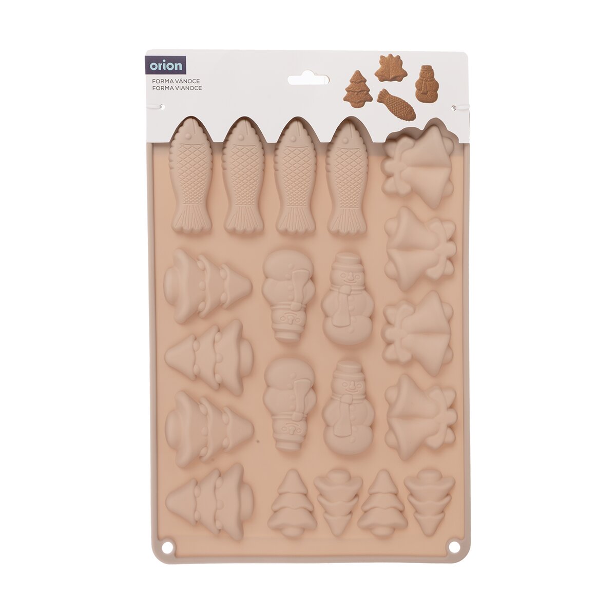 Kód produktu 154435Nepřilnavá béžová silikonová forma umožní naráz upéct 20 ks pracinek ve tvaru sněhuláků, zvonků, ryb či stromků.