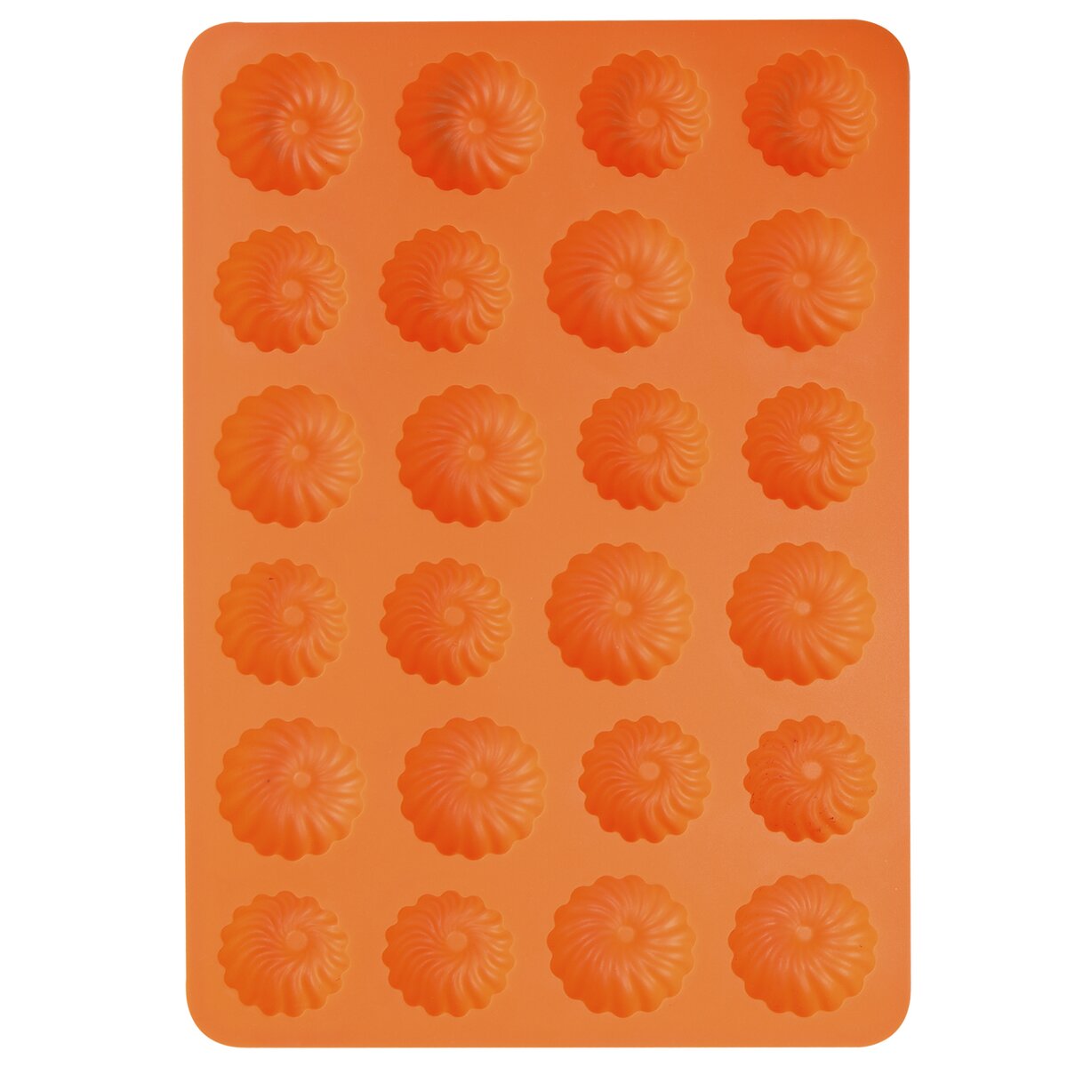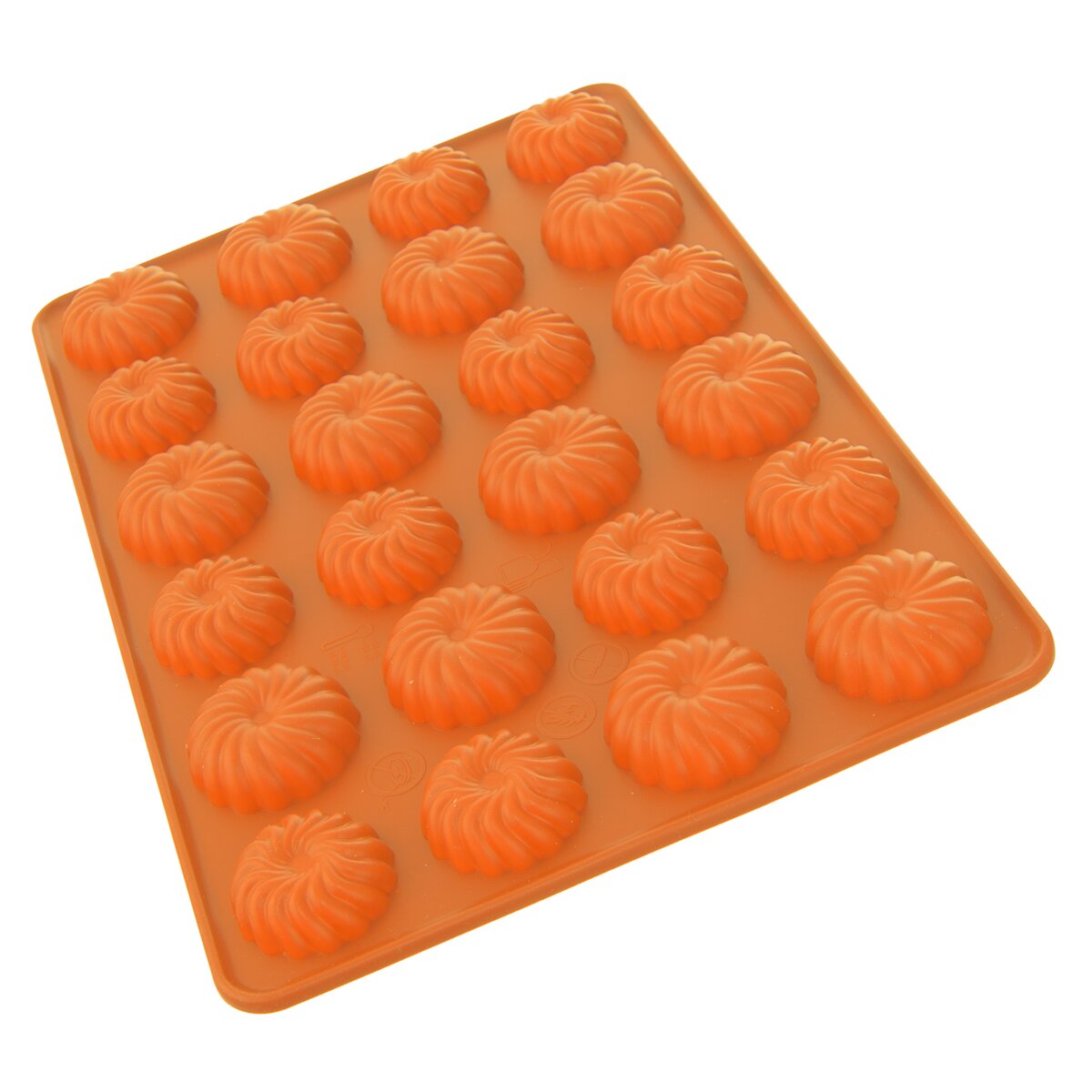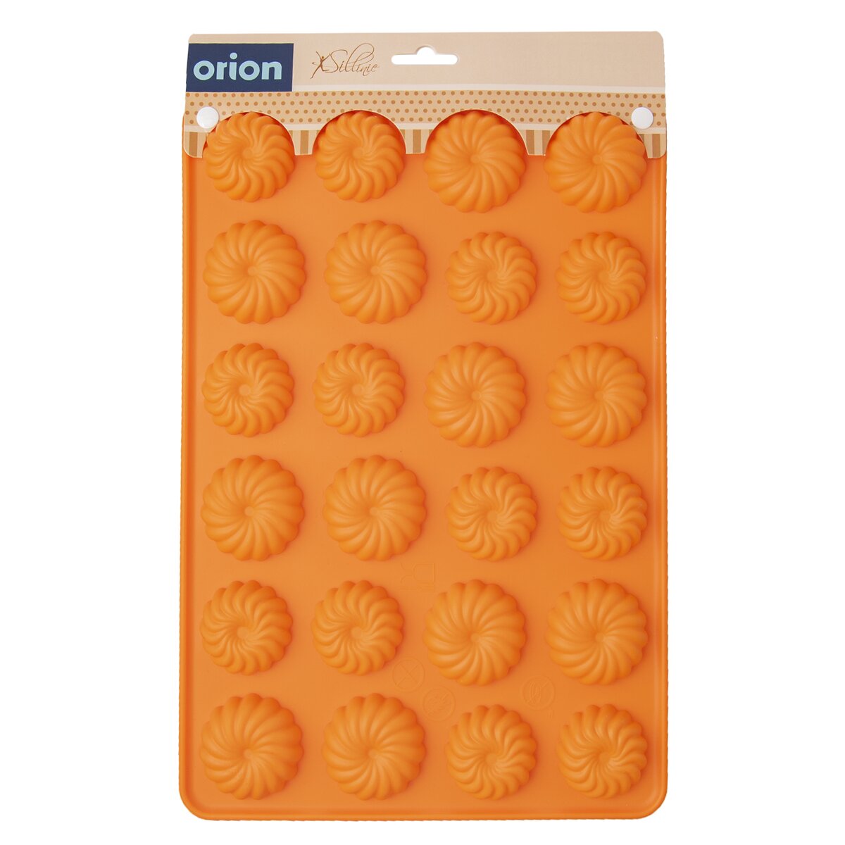 Kód produktu 151731Nepřilnavá oranžová silikonová forma pro rychlé a stejnoměrné pečení 24 ks malých sušenek nebo cukroví ve tvaru věnečku s propracovanými detaily.