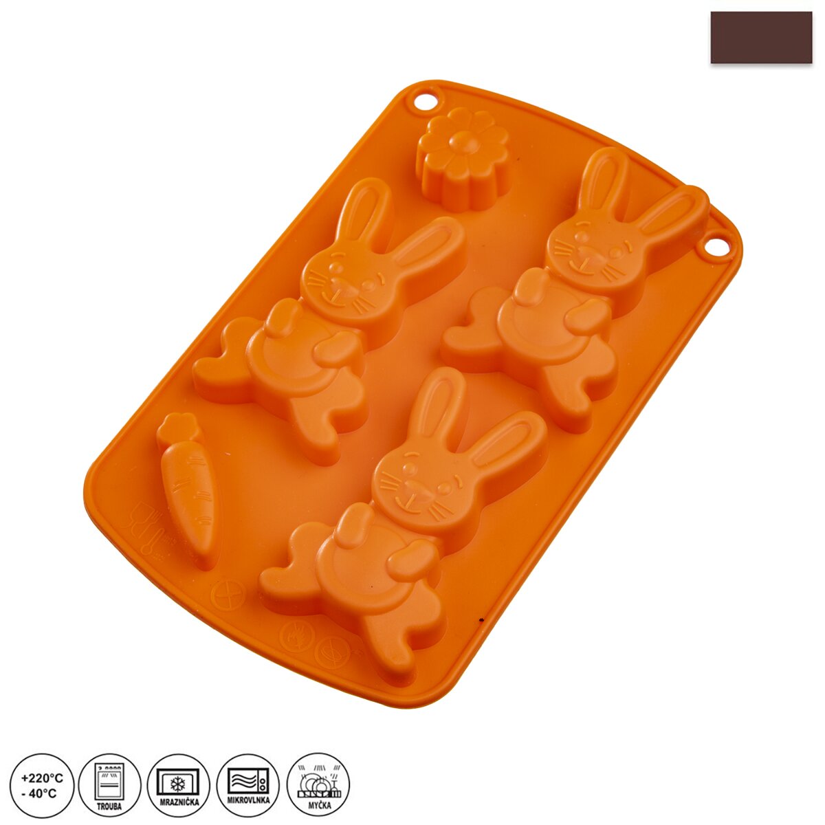 Kód produktu 124961Nepřilnavá velikonoční silikonová forma pro rychlé a stejnoměrné pečení 5 ks sušenek nebo k výrobě originální čokolády.