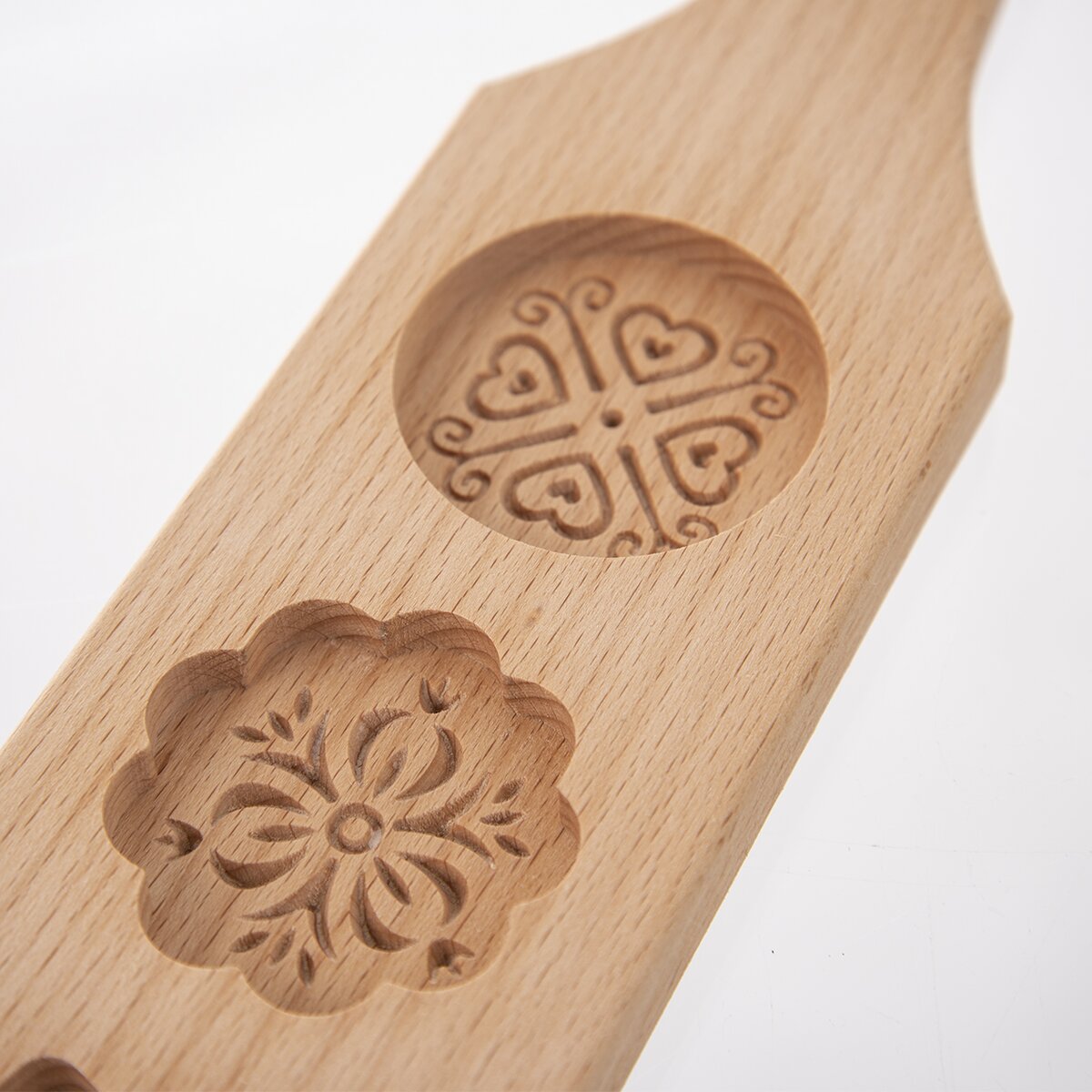 Kód produktu 127411Forma z bukového dřeva na výrobu vytlačovaných sušenek, cukroví a perníčků kulatého a květinového tvaru, ale i k dekoraci.