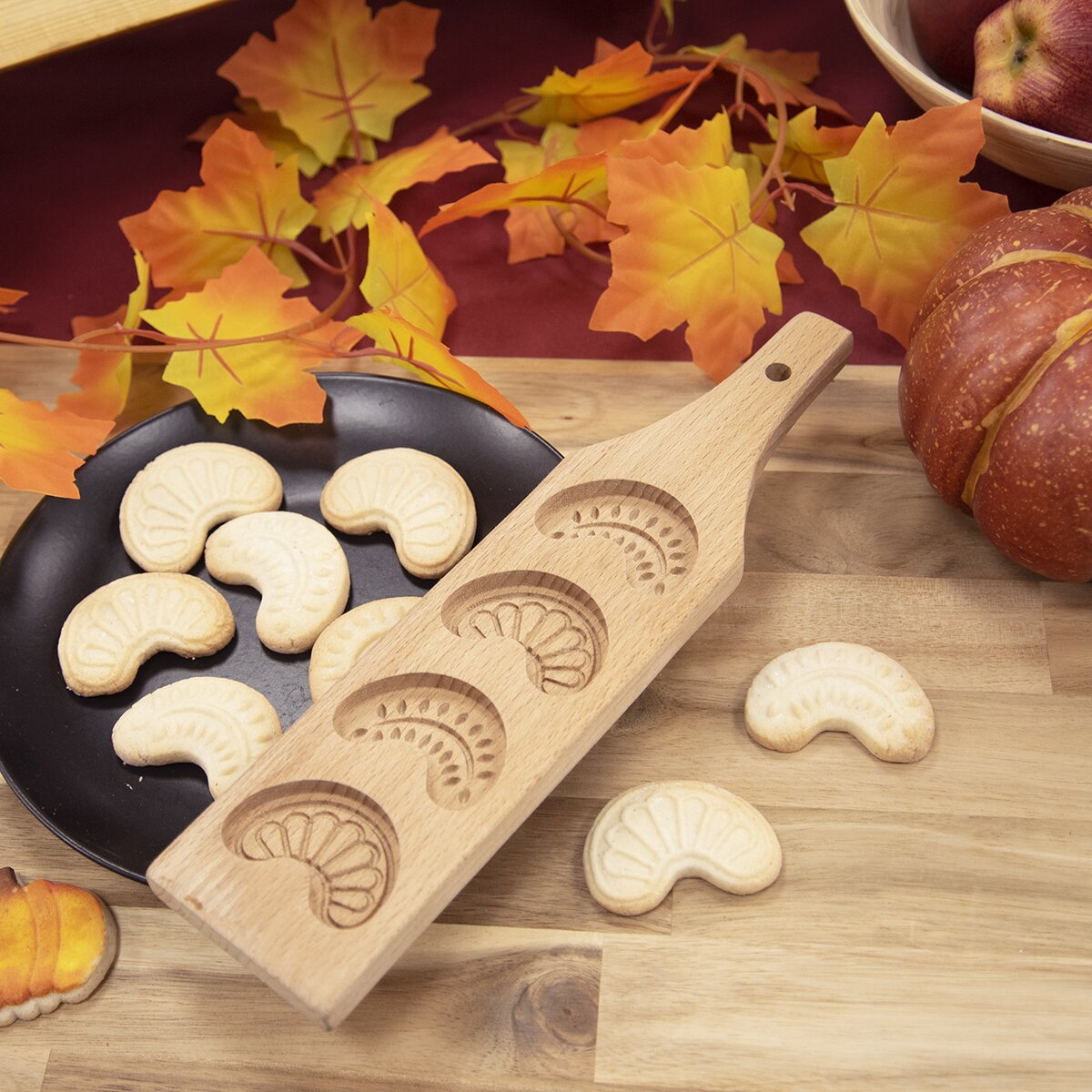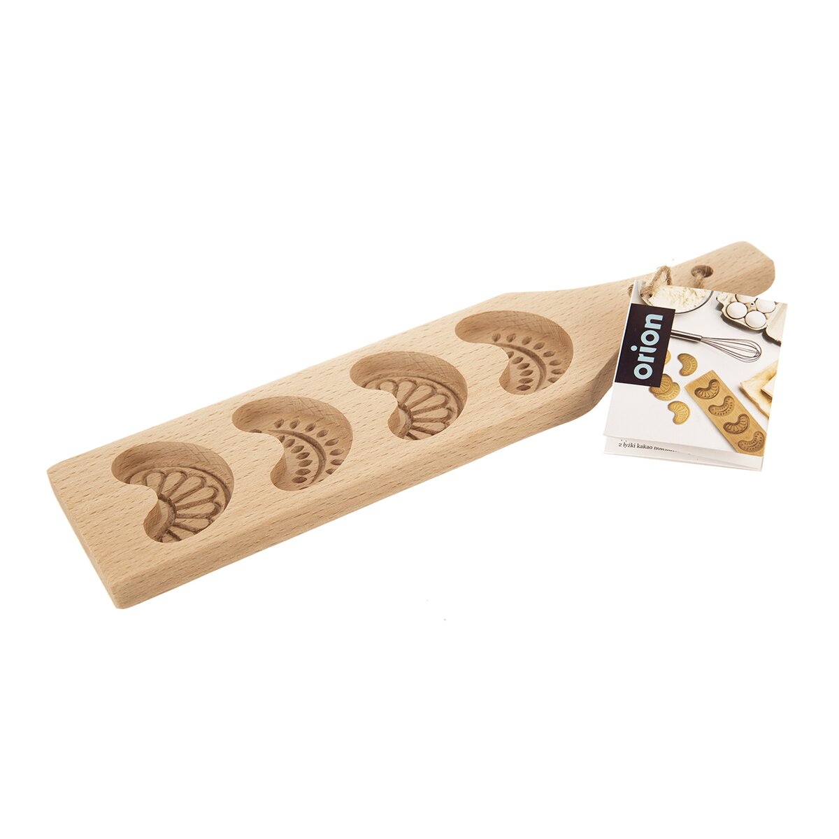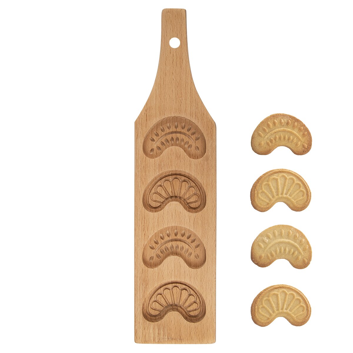 Kód produktu 127428Forma z bukového dřeva na výrobu vytlačovaných sušenek a cukroví ve tvaru rohlíčků se zajímavým reliéfem, bude i krásnou rustikální dekorací.