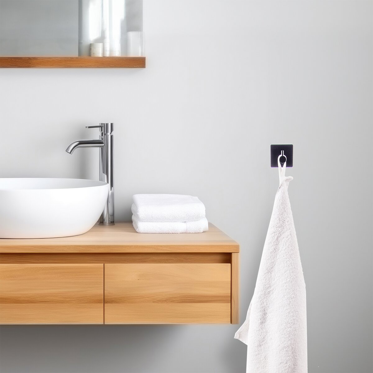 Kód produktu 834727Hranatý kovový háček v sadě 2 kusů má lepicí spodní vrstvu, díky které není třeba vrtat do zdi nebo jiného hladkého povrchu.
