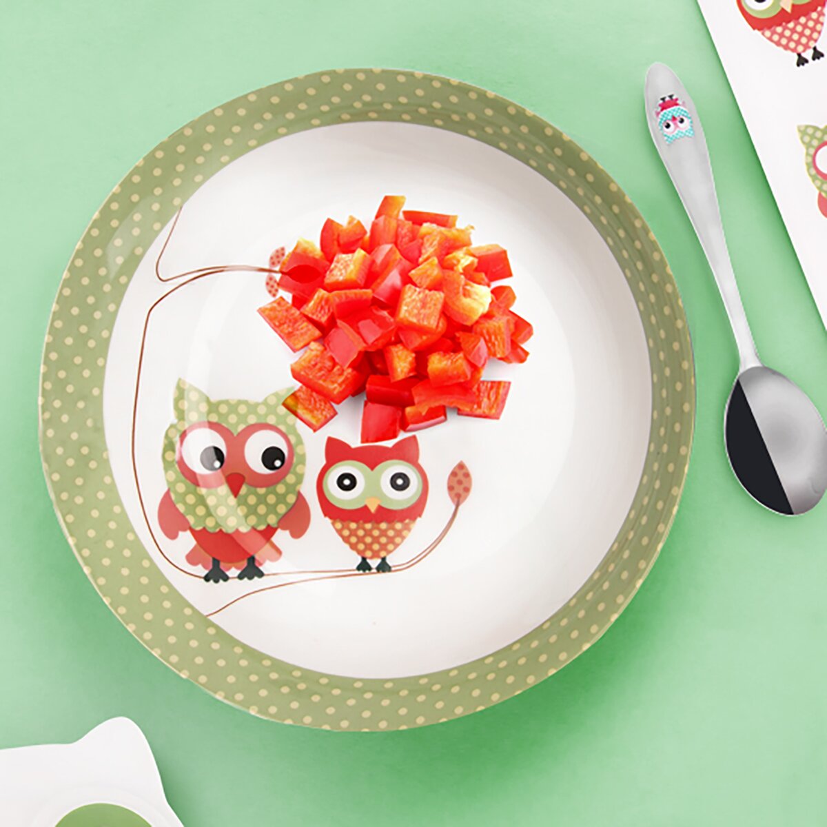 Hluboký talířek pro malé nezbedy, který je potěší svým roztomilým motivem dvou soviček. Pochutnají si jak na polévce, rajské omáčce s těstovinami, tak i na svačince plné ovoce či zeleniny.