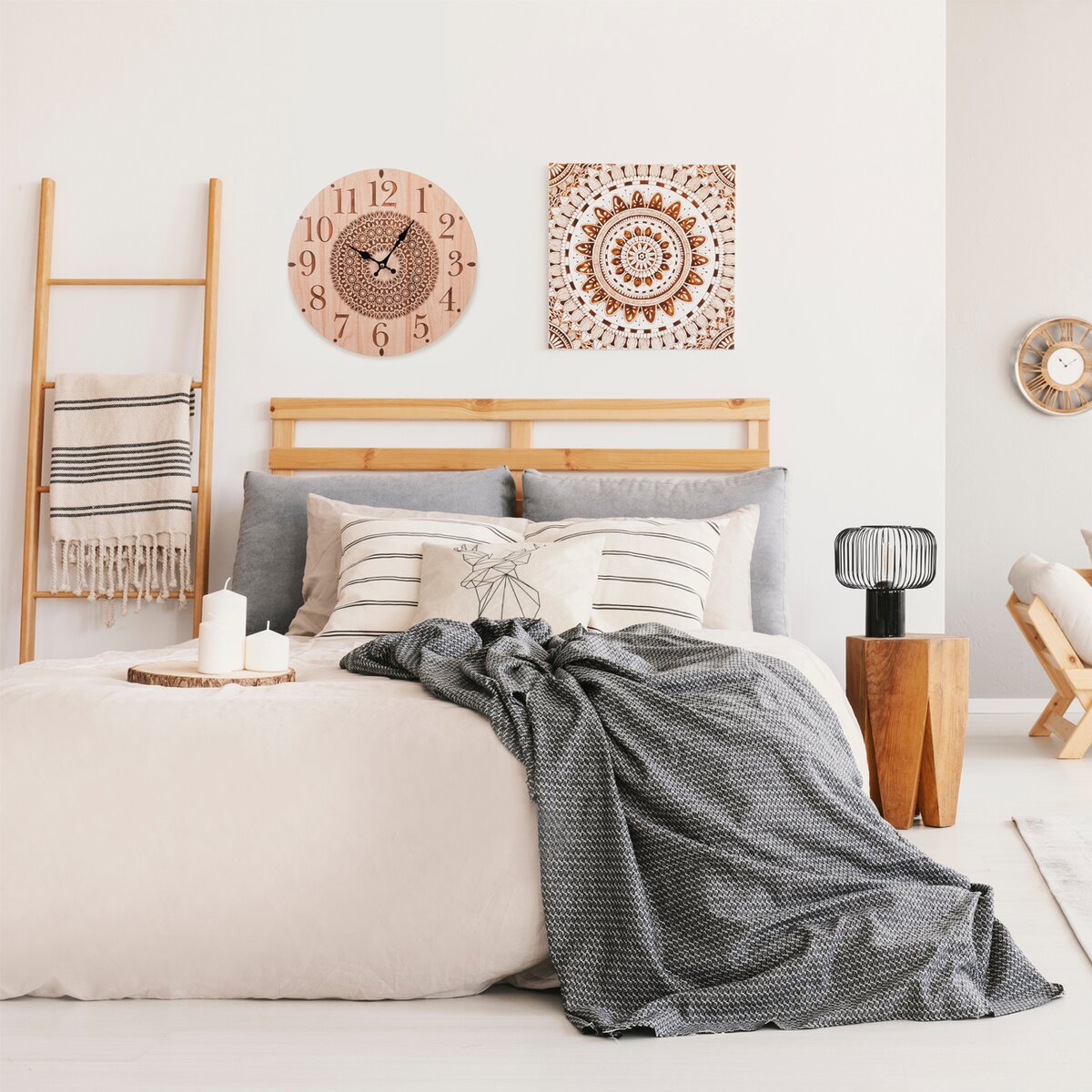 Kód produktu 130838Nástěnné dřevěné hodiny se stylovým dekorem MANDALA budou praktickým, ale i designovým prvkem.