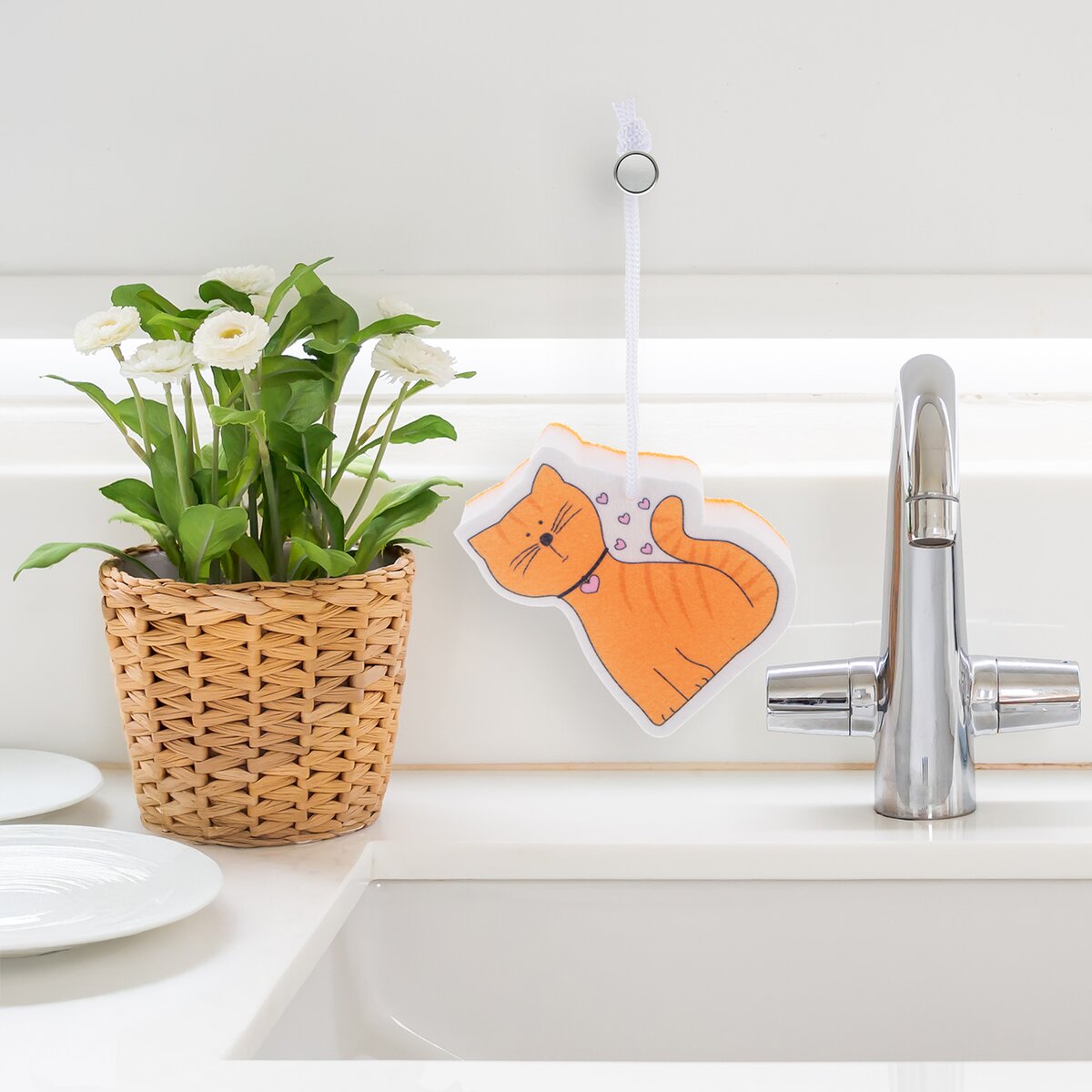 Kód produktu 710535Houba na nádobí ve tvaru roztomilé kočičky je určena k důkladnému mytí nádobí a různých ploch v domácnosti, lze ji zavěsit poblíž dřezu nebo umyvadla.