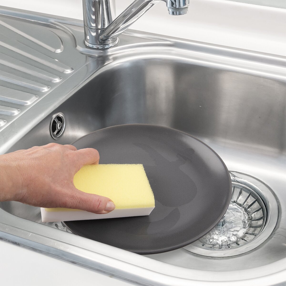 Je vyrobena z melaminu a polyuretanu, který funguje při odstraňování hrubších nečistot.