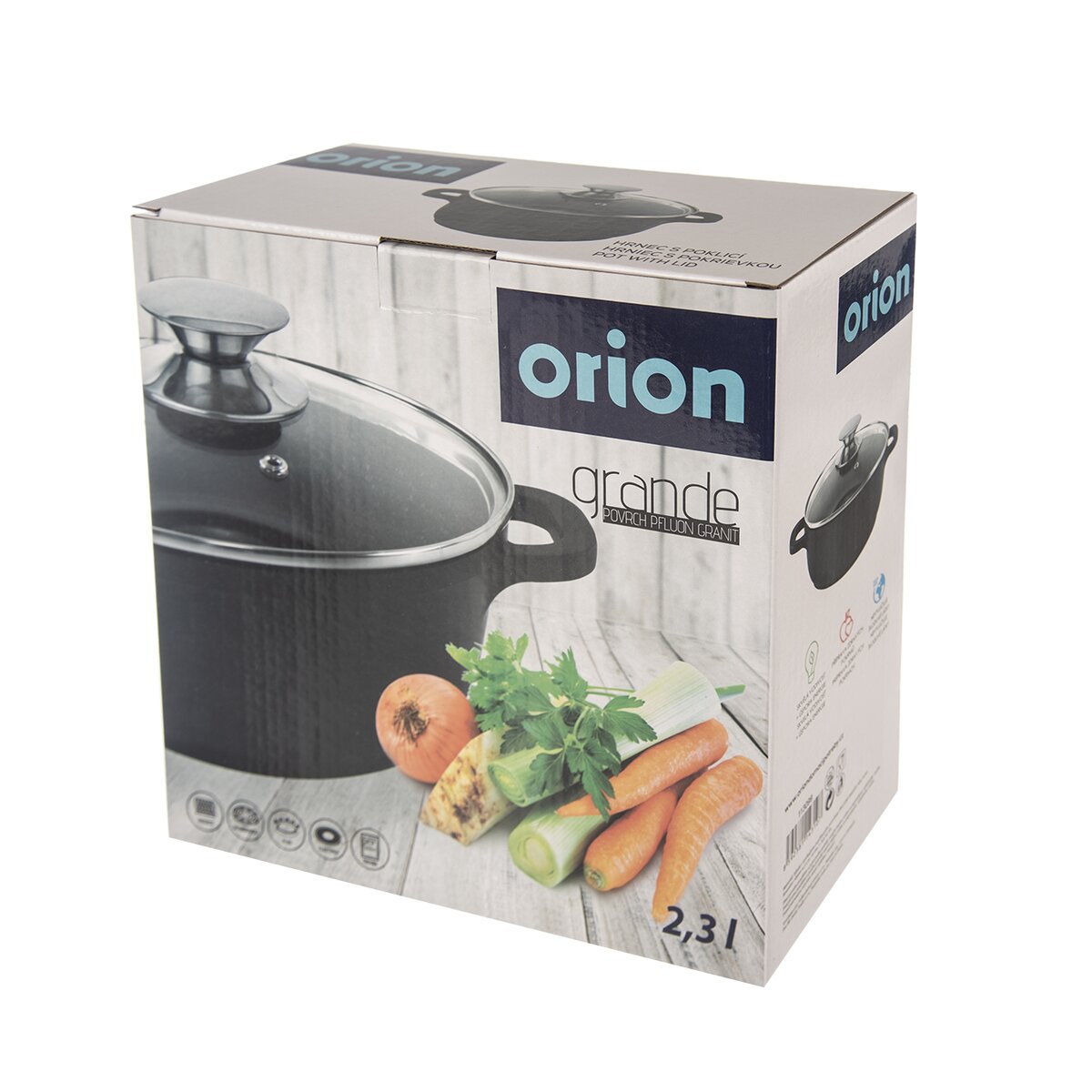 Kód produktu 113099Hrnec GRANDE s kvalitním nepřilnavým povrchem, objemem 2,3 l a se skleněnou poklicí je vhodný na všechny typy sporáků včetně indukce i do trouby. Možnost mytí v myčce.