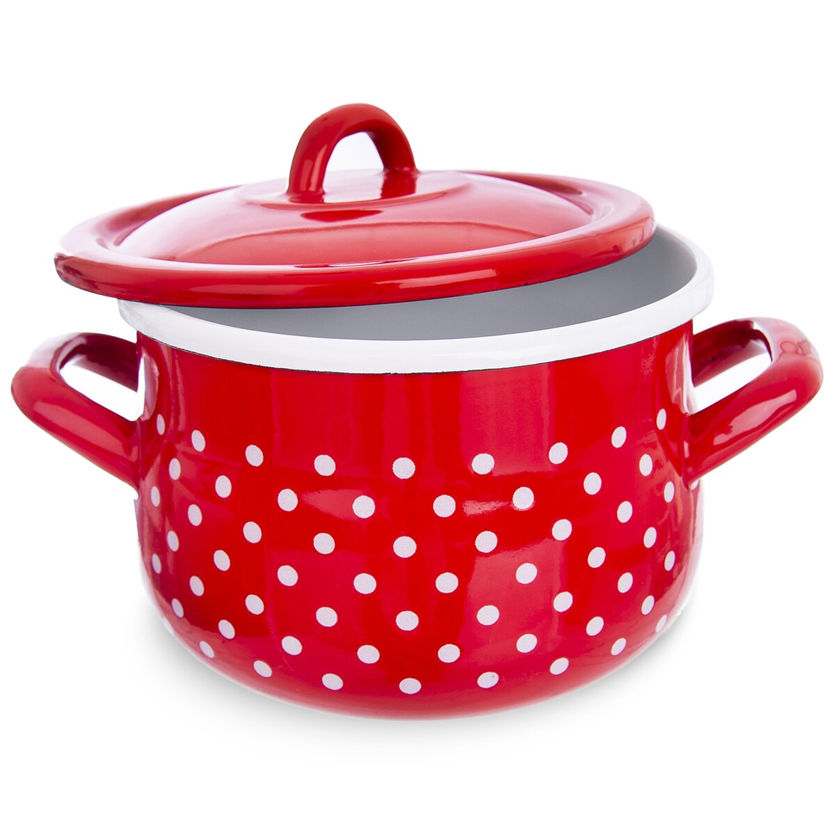 Kód produktu 110277Krásný červený smaltovaný hrnec s poklicí o objemu 2,3 l k vaření, dušení i pečení vašich oblíbených jídel, je vhodný na všechny typy sporáků i do trouby.