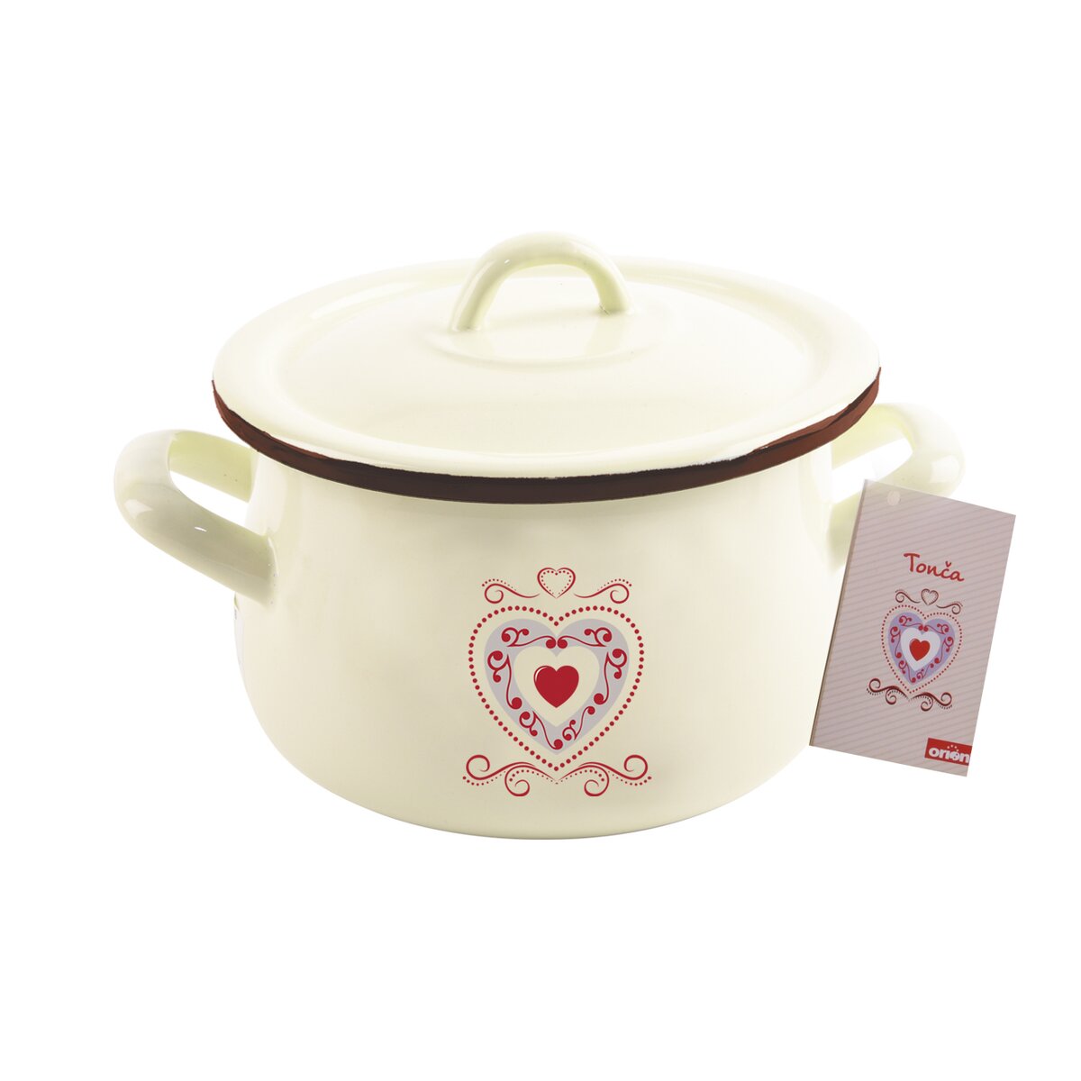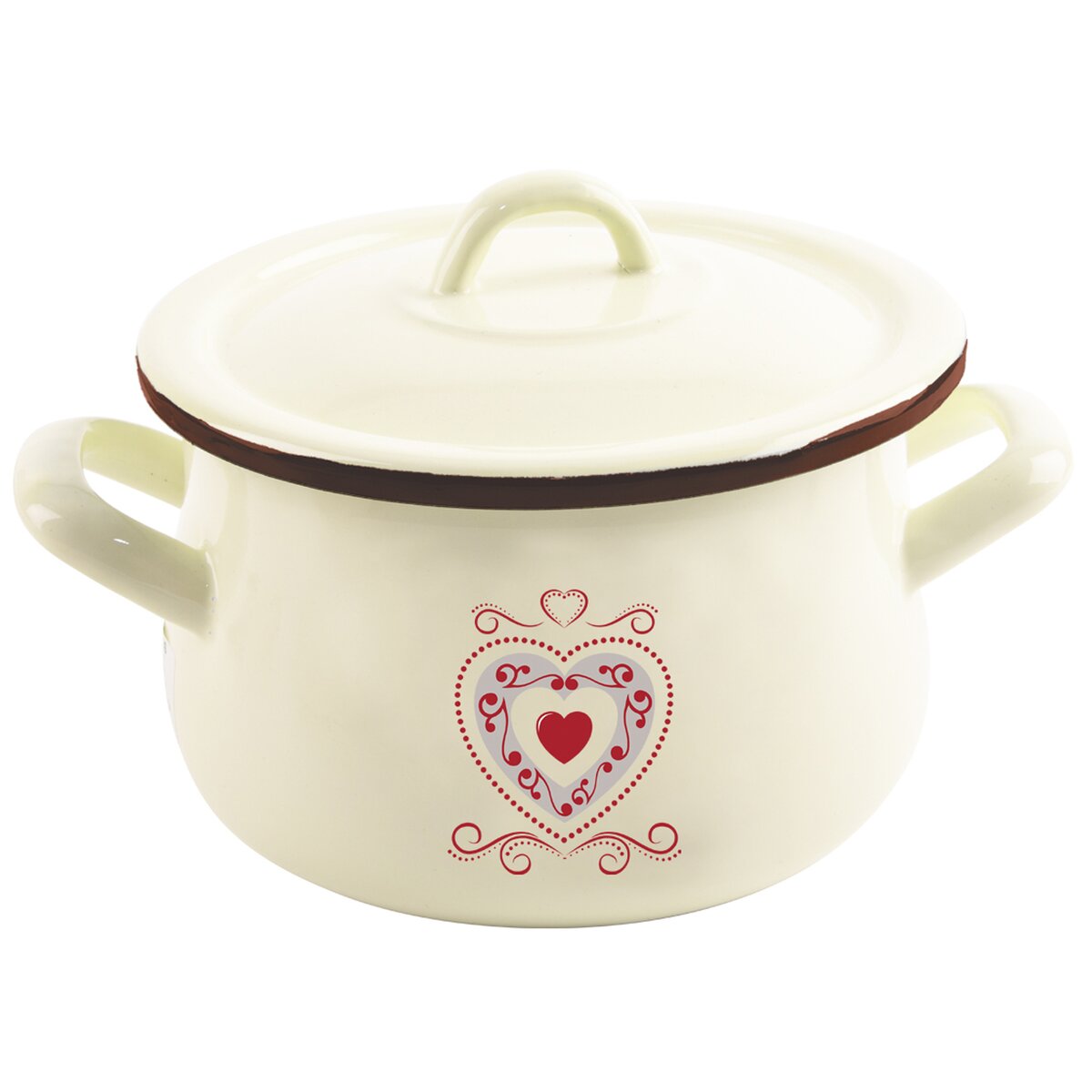 Kód produktu 113088Krásný krémový smaltovaný hrnec s lidovým dekorem o objemu 4,8 l s poklicí k vaření, dušení i pečení vašich oblíbených jídel, je vhodný na všechny typy sporáků i do trouby.