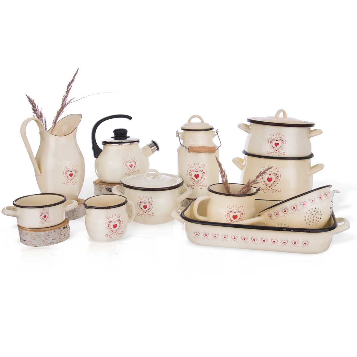 Více informacíI dnes, kdy je v kurzu rustikální styl vybavení domácnosti a kouzlo starých časů nás dokáže uchvátit, nabízíme možnost vybrat si poctivé smaltované nádobí s dlouhou životností. Ocelový základ je pokryt smaltem, což je tavenina podobná sklu a vytvoří tak odolný, zcela zdravotně nezávadný povrch.