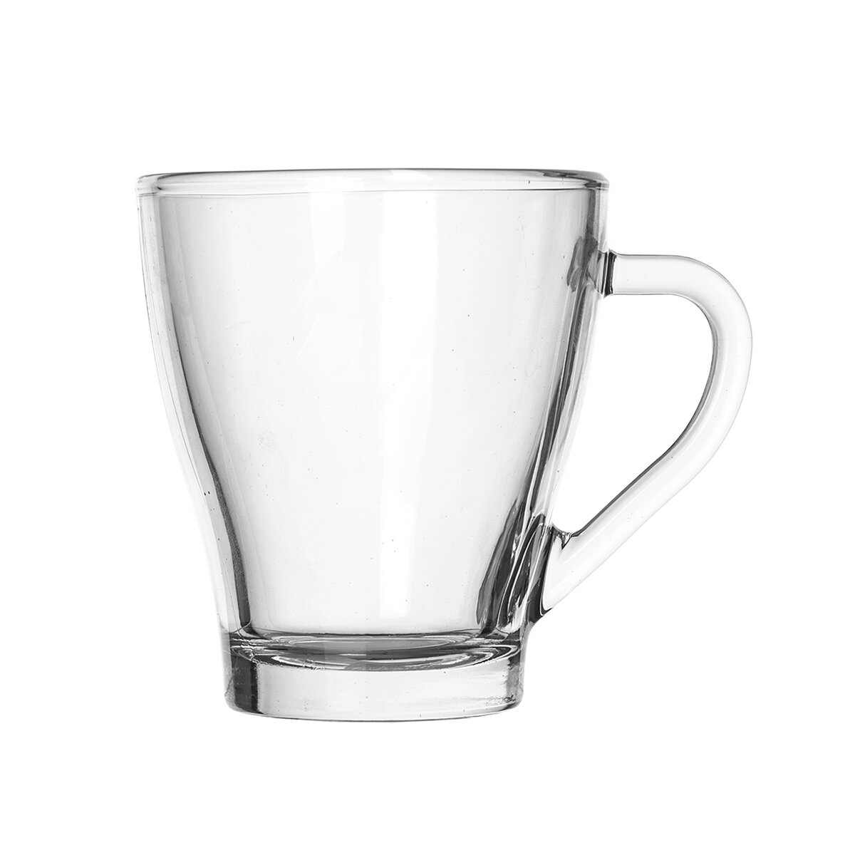 Kód produktu 128887Rozšiřující se skleněný hrnek s uchem o objemu 270 ml, vhodný na teplé i studené nápoje.