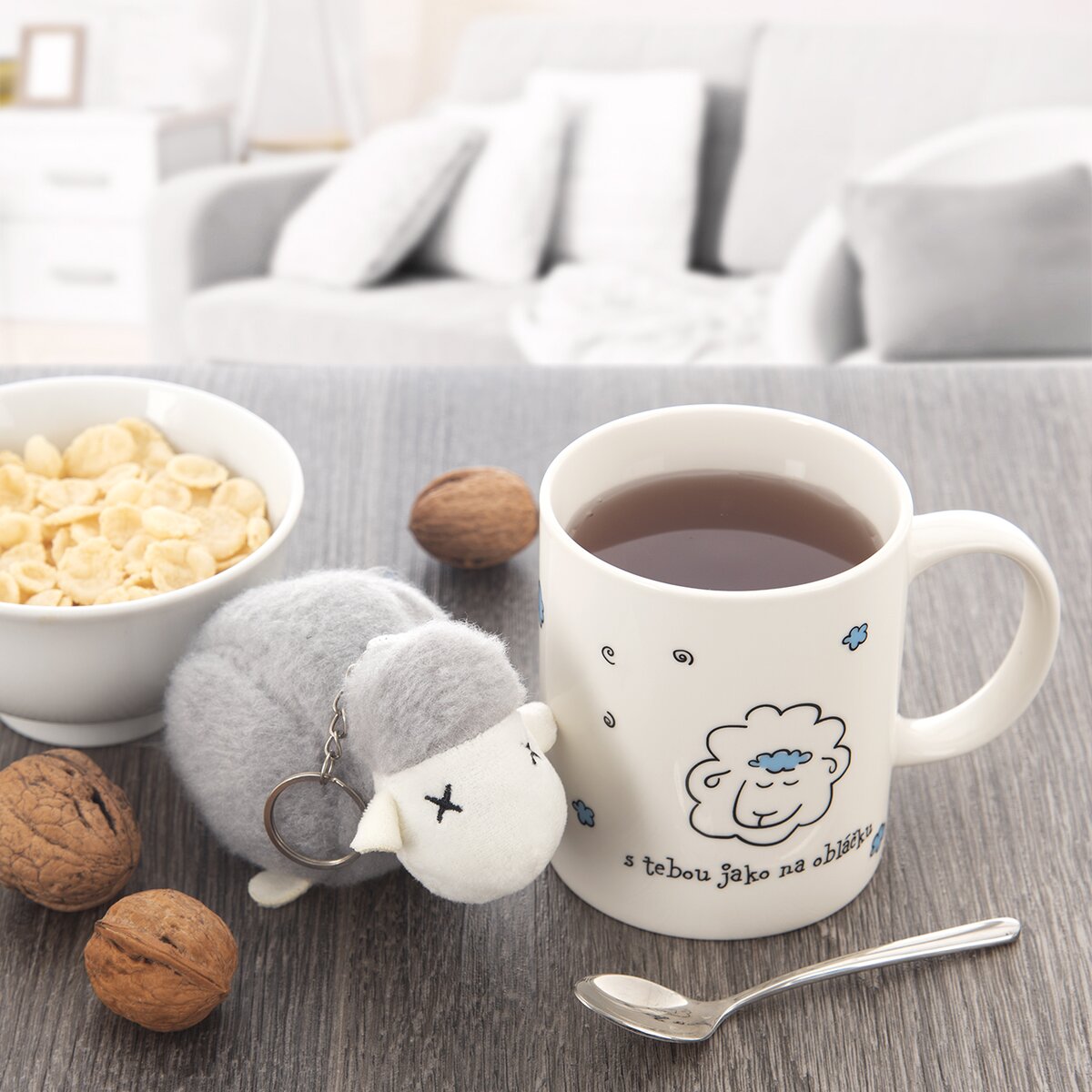 Kód produktu 129624Rovný porcelánový hrnek s nápisem "s tebou jako na obláčku" a motivem ovečky je doplněn doplněn plyšovým přívěskem, vhodným k zavěšení. Milý dárek pro radost.