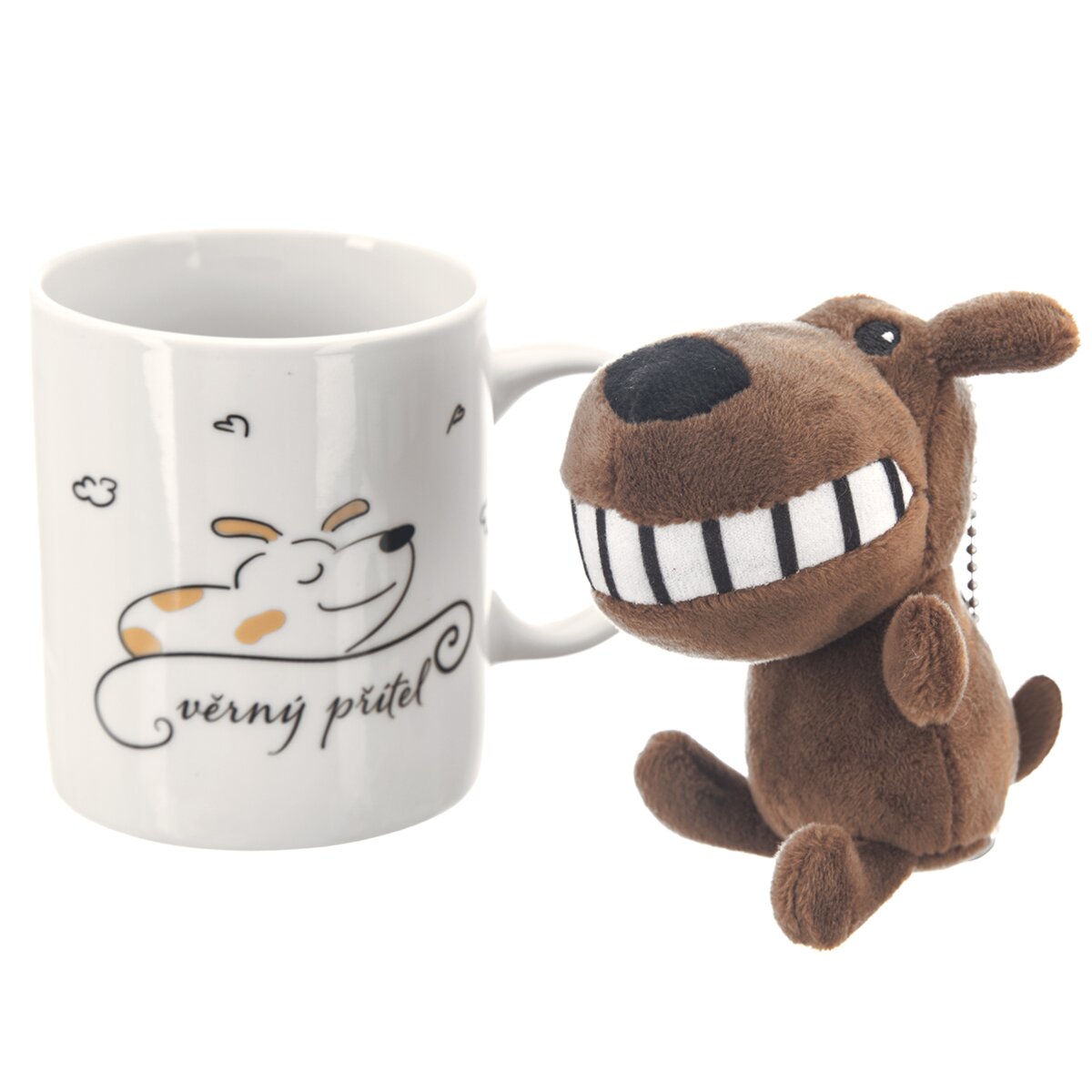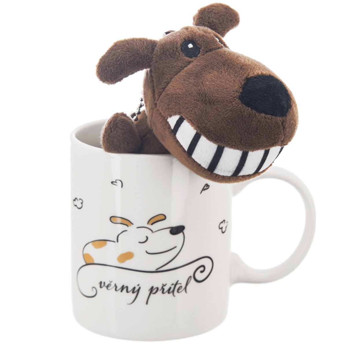 Kód produktu 129625Rovný porcelánový hrnek s nápisem "věrný přítel" a motivem pejska je doplněn roztomilým přívěskem, vhodným k zavěšení. Milý dárek pro radost.