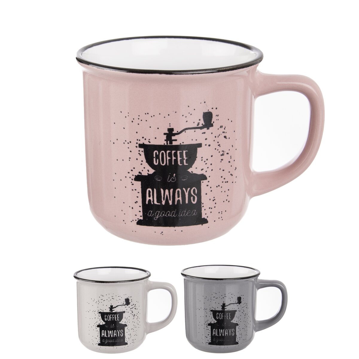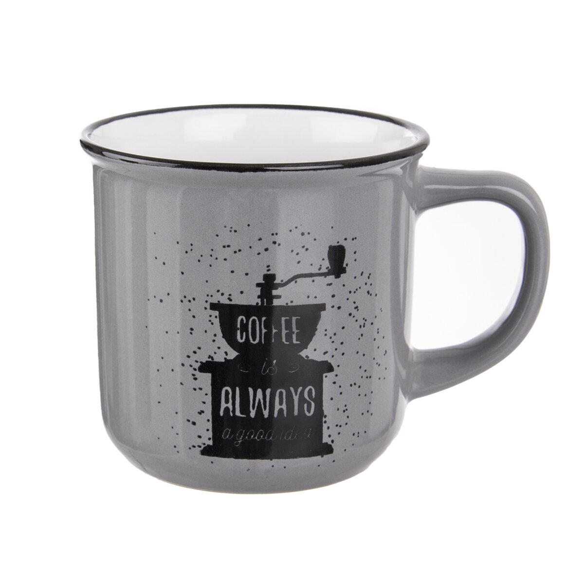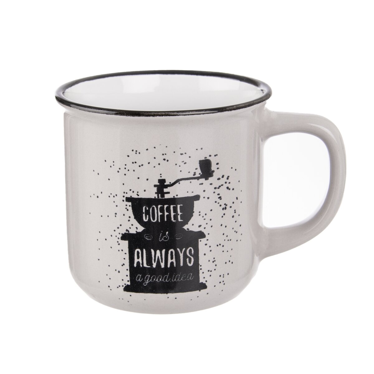 Ať už upřednostňujete espresso, cappuccino nebo café latte, vychutnejte si váš oblíbený nápoj v tomto keramickém hrnku o objemu 370 ml. Dekor kávového mlýnku a anglický nápis „Káva je vždycky dobrý nápad“ se hodí pro všechny pravé milovníky tohoto horkého nápoje.