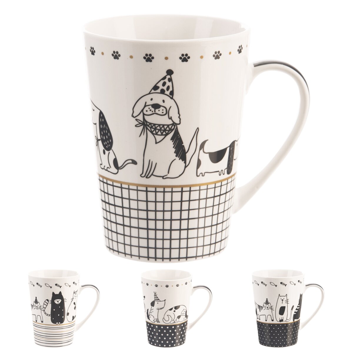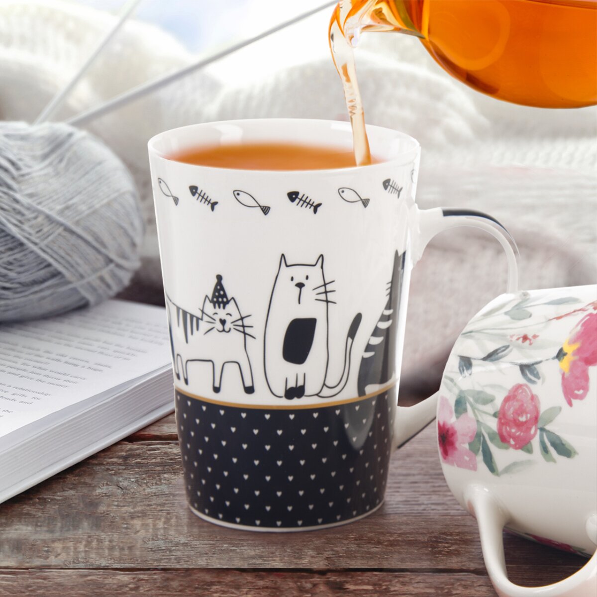 Kód produktu 129435Porcelánový hrnek s roztomilým potiskem koček a psů, o objemu 550 ml, je vhodný k servírování teplých i studených nápojů, lze jej použít v mikrovlnné troubě i v myčce.