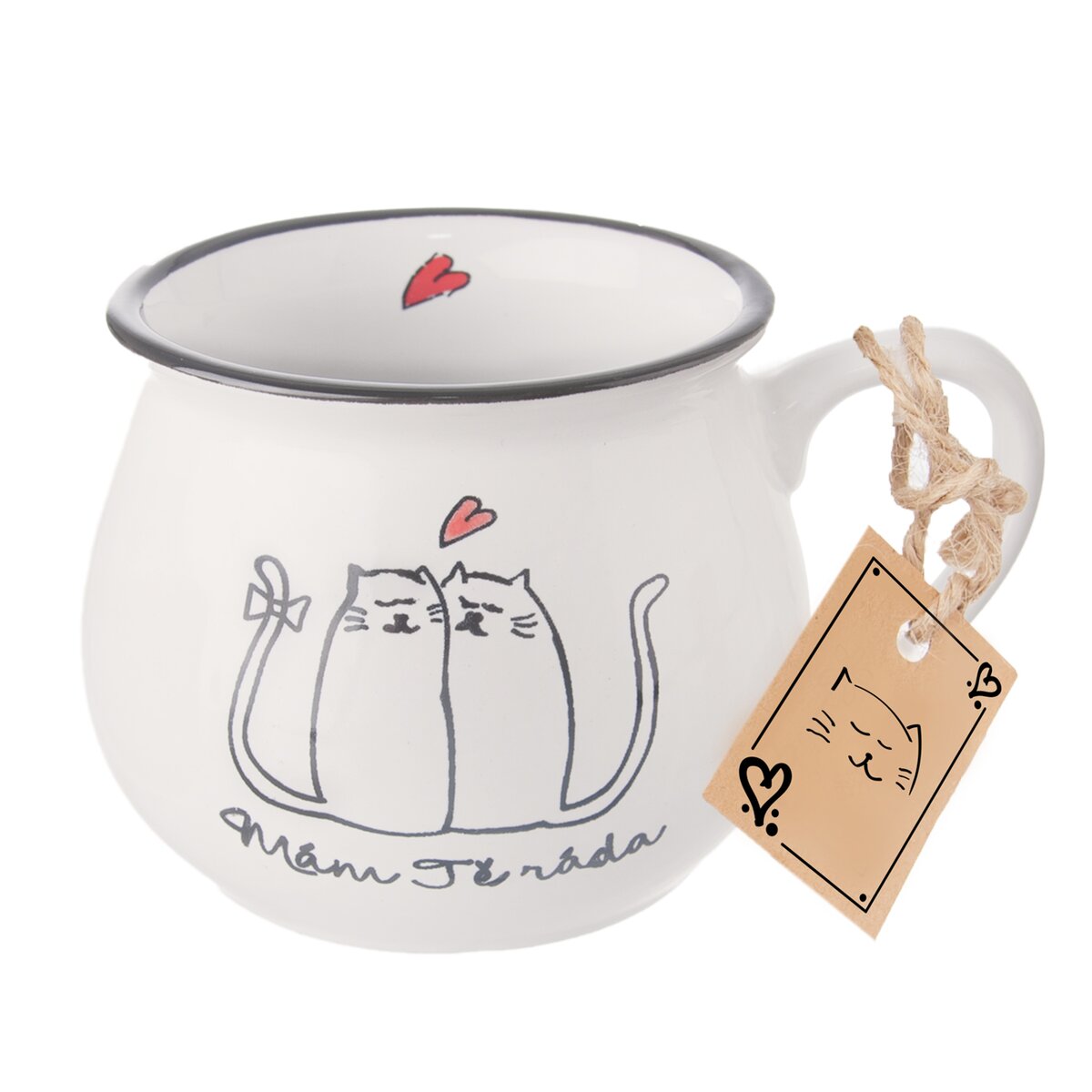 Kód produktu 128842Keramický hrnek o objemu 0,32 l s dekorem dvou koček a nápisem MÁM TĚ RÁDA.